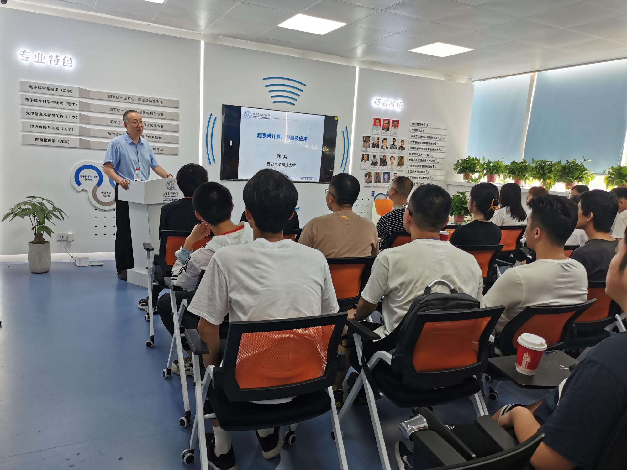 魏兵教授着重为同学们介绍了物光院的发展历史沿革、理工融合的专业特色、师资队伍和升学就业概况。他耐心细致地为同学们介绍了物光院面向电子信息大类本科生开设的三个国家一流专业(电子科学与技术、电子信息科学与技术、光电信息科学与工程)和国防紧缺专业(电波传播与天线)各自的特色。在梳理和回顾学院在人才培养方面已取得的硕果时,魏教授反复强调发展基础学科、学好数理基础的重要性。