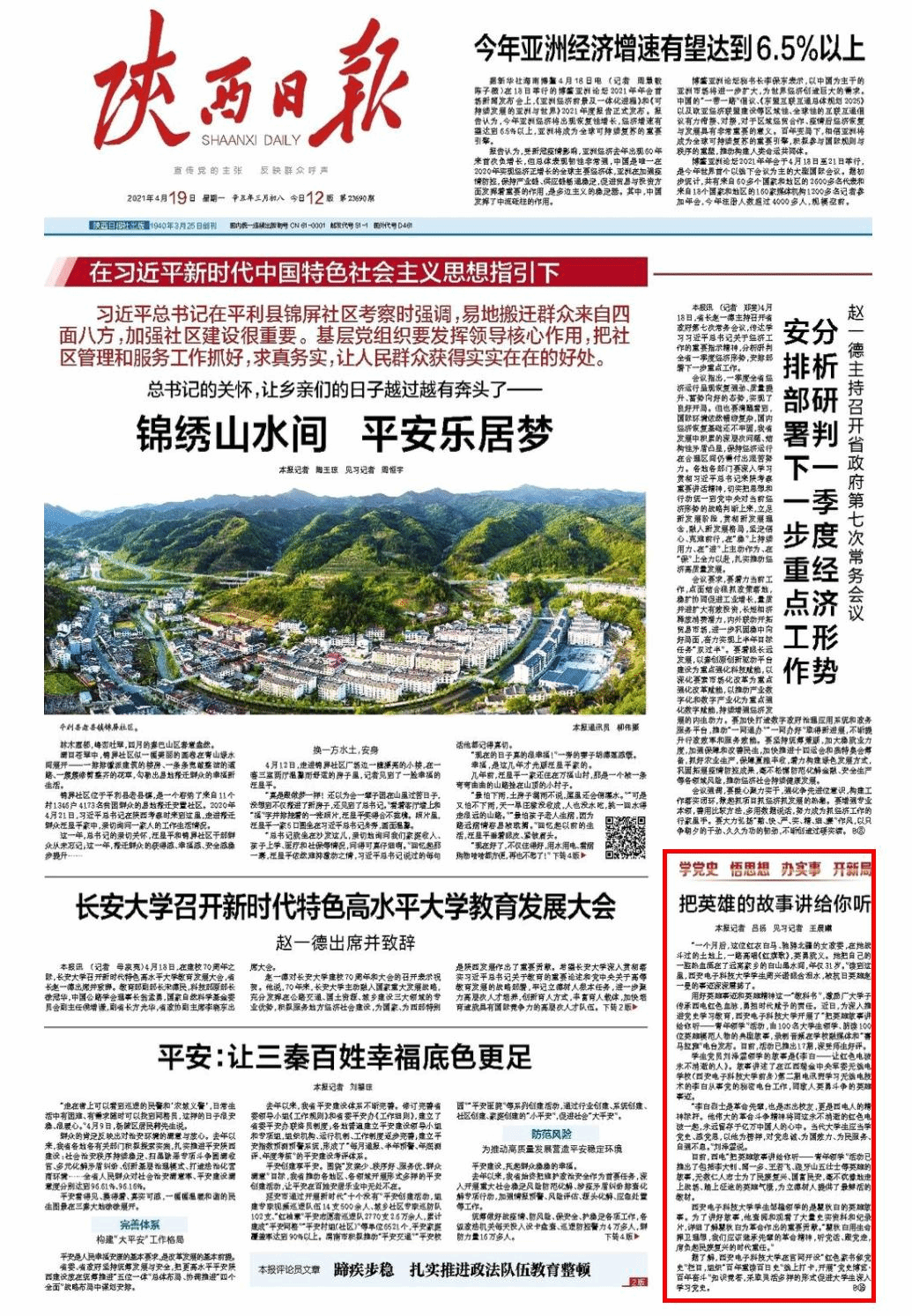 《青年领学》栏目获《陕西日报》头版报道