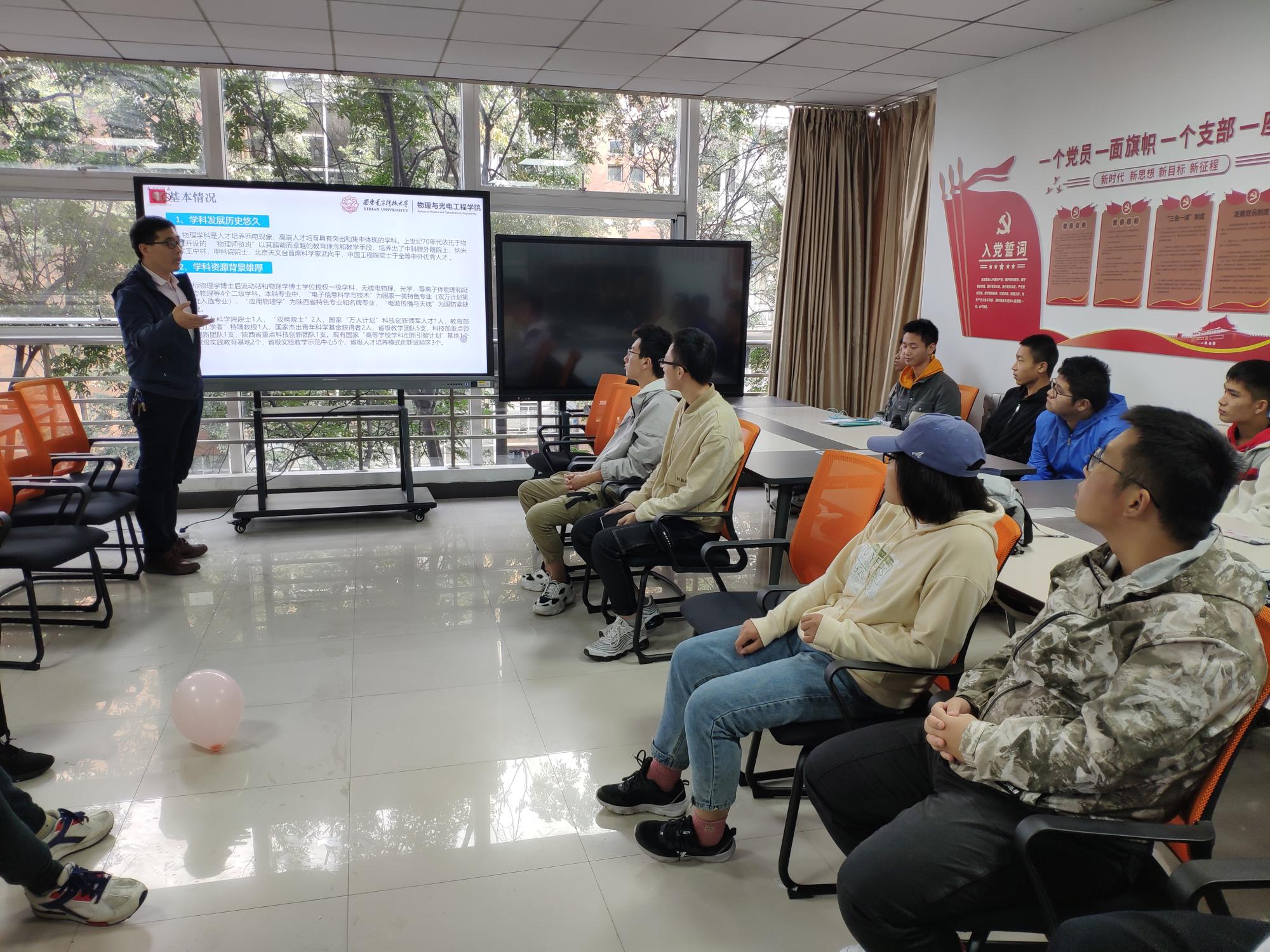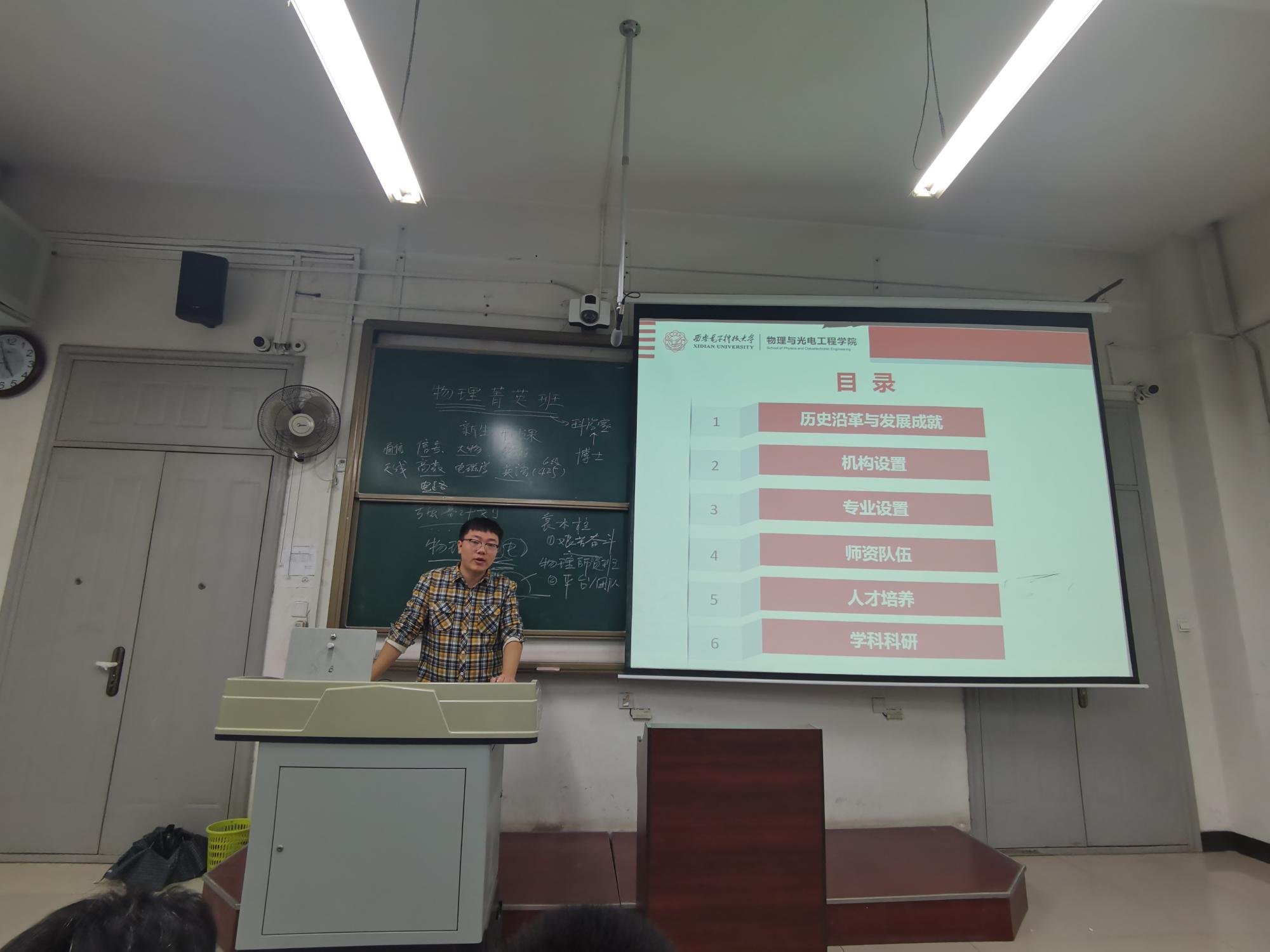 10月15日下午,物理与光电工程学院2020级新生辅导员袁本柱在A楼220教室为物理菁英班全体同学带来了一场别开生面的新生研讨课。课堂由物理师资班的故事展开,他在课上说到,发扬“艰苦奋斗”的西电精神是学好基础学科的必要条件,肯吃苦,多钻研才能悟出物理的乐趣。同学们纷纷表示将潜心学习,重现辉煌。最后,课程在轻松愉快的氛围中圆满结束。