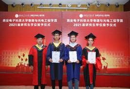 在庄严的全体奏唱国歌仪式后,学位评定委员会主席邵晓鹏教授宣读授位决定并寄语全体2021届毕业生:“祝贺各位同学圆满完成三年研究生学业,希望各位同学传承西电全心全意为人民服务的家国情怀,不忘学院‘物理改变世界,光电引领未来’的使命担当!”。