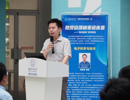 黄军荣介绍了物理与光电工程学院“追光逐电”系列活动基本情况,对参加本次教授宣讲团专业推介活动的师生表示欢迎。本次教授宣讲团成员有:电子科学与技术专业负责人、物理与光电工程学院副院长周慧鑫教授,电子信息科学与技术专业负责人、发展规划部部长郭立新教授,光电信息科学与工程专业负责人朱江峰教授,和电波传播与天线专业负责人弓树宏教授。