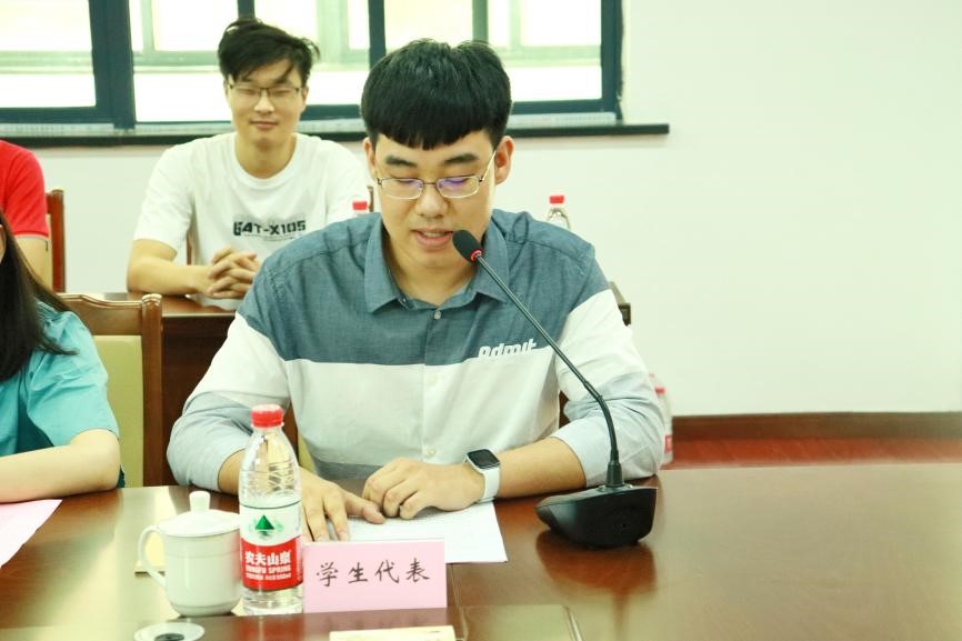 第二学士学位班班长沙岩松作为学生代表分享了在西电的学习生活体会,对学校提供的优质学习环境和师资力量表示感谢,谈到在新的学期要树立新的目标、攀登新的高峰,也希望在未来有机会能将在浔学习的成果,“正向循环”注入南浔未来建设。