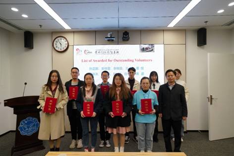 年会的成功举办离不开工作组和志愿者团队的付出,年会举办期间,志愿者们始终以饱满的热情、高度的责任感全身心地投入服务工作。闭幕式上,物理与光电工程学院副书记黄军荣向志愿者团队中的10名同学颁发了优秀志愿者证书。