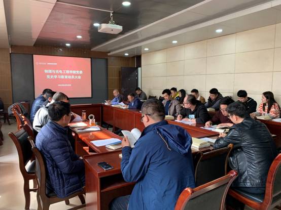 3月23日,物理与光电工程学院于北校区西大楼三区412会议室召开党史学习教育启动会,会议下发了学院党史学习教育实施方案并进行了工作部署,学院班子成员、两委委员,组织员、师生党支部书记共27人参加了会议。会议由学院党委书记独国社主持