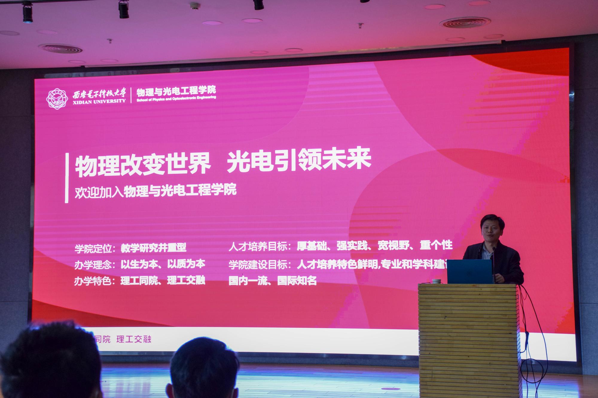 随后,同学们针对“西电故事”与秦明部长进行了持续互动。黄军荣在会上还介绍了物理与光电工程学院的辉煌历史和所取得的成就,对学院专业及学科平台进行了简要概述,并表示欢迎电子信息大类新生加入物理与光电工程学院!