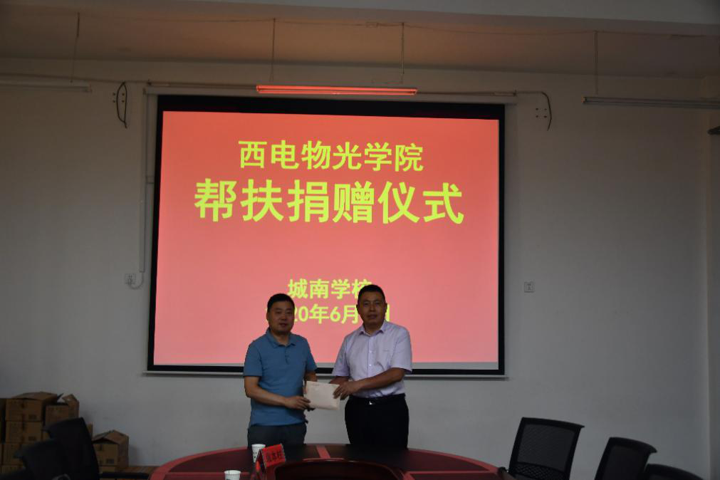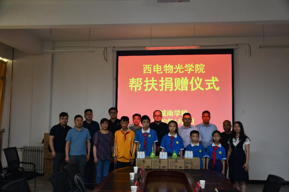 座谈会后,进行了捐赠仪式。本次来访城南学校,学院独国社、邵晓鹏、林波、周慧鑫、魏兵、辛红、李平舟七位教师每人自发捐助设立“物光助学金”,用于城南学校建设和困难学生帮扶,同时为城南学校捐赠了洗手液、消毒液等防疫物资。学院教师勉励受助学生珍惜学习机会、刻苦奋斗、健康成长,以优异成绩回馈党和国家的深切关怀和殷切希望,努力成为一个对国家、对社会有益的人。
