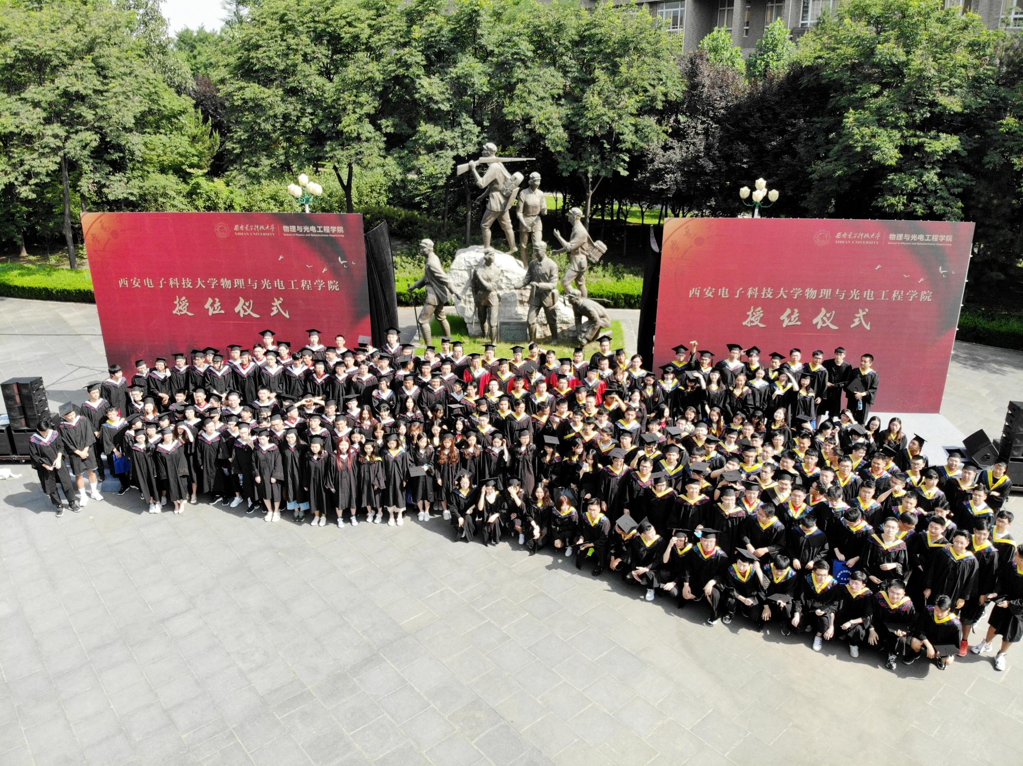 (通讯员:陈海涛 袁本柱 毕力格)7月3日上午,物理与光电工程学院2020届本科毕业生授位仪式在南校区“长征路上办学”雕塑广场隆重举行。学院党委书记独国社、执行院长邵晓鹏、副院长魏兵、学术委员会主任郭立新、学位委员会成员李平舟和500余名本科毕业生共同参加了授位仪式。仪式由学院团委书记陈海涛主持。
