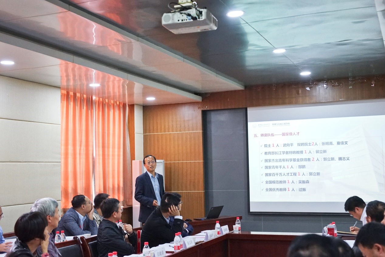 随后,学院执行院长邵晓鹏教授从历史沿革、发展成就、机构设置、专业设置、学科科研、国际合作、未来展望等等方面,向与会嘉宾详细地介绍了学院的基本情况。重点讲解了目前学院在集成攻关平台、阿秒大科学装置等重大项目的参与情况,并对现阶段学院面临的问题进行了剖析。