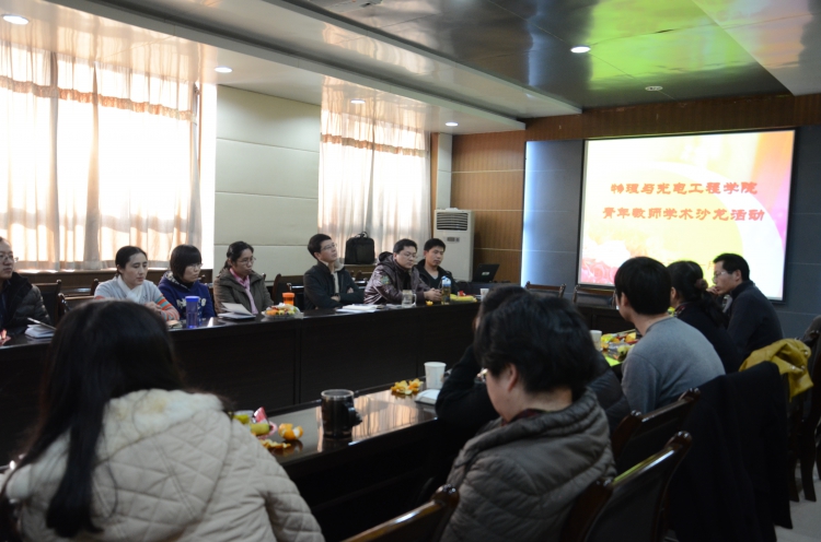 11月18日下午,物理与光电工程学院在北校区西大楼四楼会议室举办了本学期首次青年教师学术沙龙,20余位青年教师参加了此次活动,相互交流了自己的研究方向和近期的科研成果。