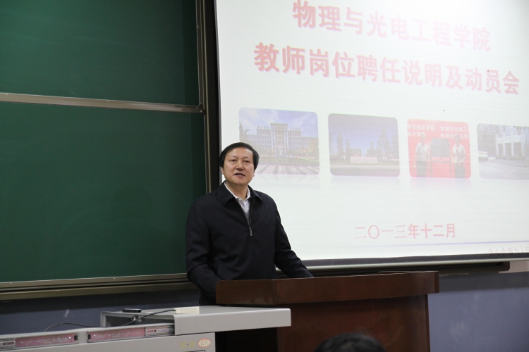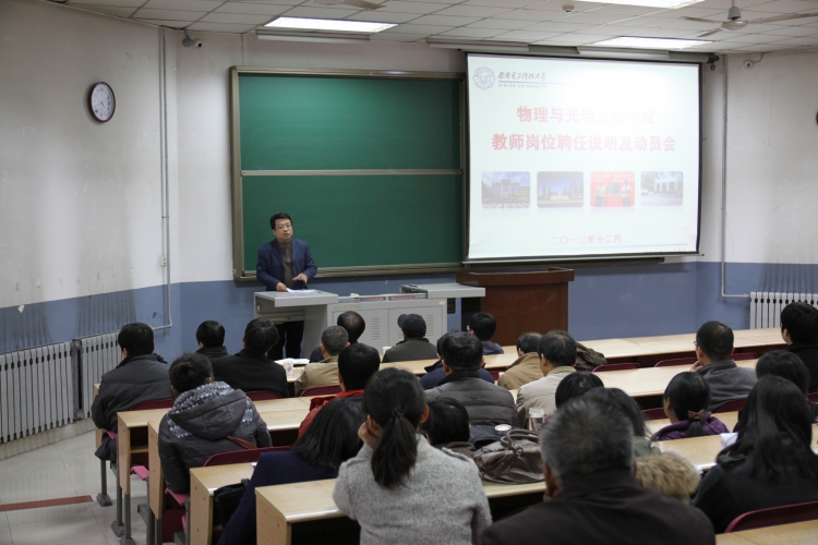 12月8日下午,物理与光电工程学院在北校区101阶梯教室召开教师岗位聘任说明及动员会。副校长陈勇出席,学院领导班子及学院全体教师参加了会议。会议由学院党委书记杨光玮主持。