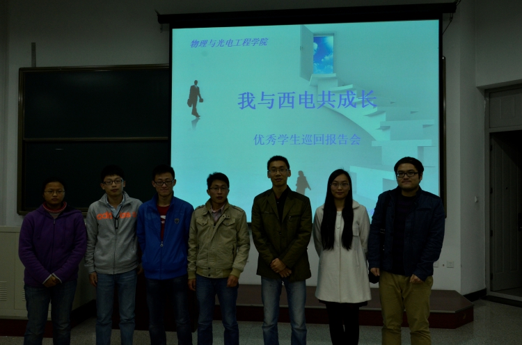 (通讯员:姜升,赵志奇)为巩固学年总评成果,充分发挥先进典型激励人、教育人、引导人的作用,激发广大学生勤奋学习、全面发展,在学工处的统一部署下,物理与光电工程学院从2012-2013学年总评表现突出的学生中,邀请五名本科高年级同学作为“我与西电共成长”优秀学生巡回报告团成员。这些同学来自不同的专业,他们的事迹具有典型性和导向性。首场报告会于11月17日晚7时在D楼211教室成功举办,此次报告会由物理与光电工程学院2011级电科专业优秀学生代表张中恺主讲。新生辅导员刘昕伟、陈海涛及500余名大一新生共同参加了此次报告会。