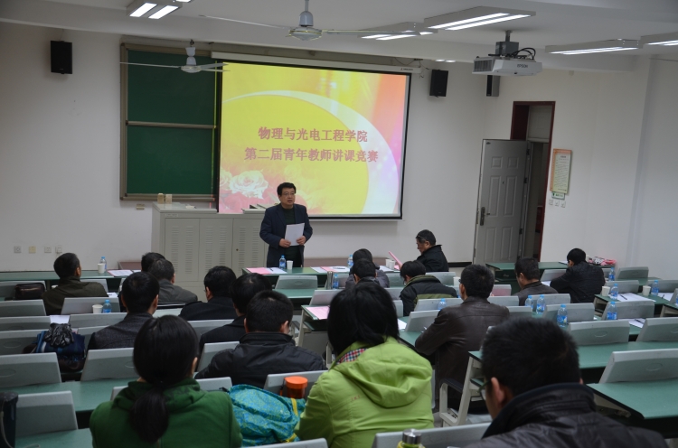 本次竞赛历时共两天,学院共有26名青年教师参加了此次比赛,竞赛内容涉及多门学科基础课、专业基础课和专业核心课。比赛现场气氛严谨而不失活泼,参赛教师总体授课信息量饱满,教学重难点突出,板书和课件制作精美,对研究型、启发型、探究型教学模式的理解与运用更加深刻娴熟,充分展示了学院青年教师的讲课艺术和教学水平。竞赛评审组分由专家评委和青年教师评委组成。其中,专家评委由吴振森、韩一平等多位具有丰富教学经验的专家组成,青年教师评委由所有参赛教师组成。计算成绩时,专家组评分取去掉一个最高分和一个最低分的平均分,占总分90%,青年教师组评分取去掉两个最高分和两个最低分的平均分,占总分10%,充分体现了比赛的公正性、公平性、公开性。