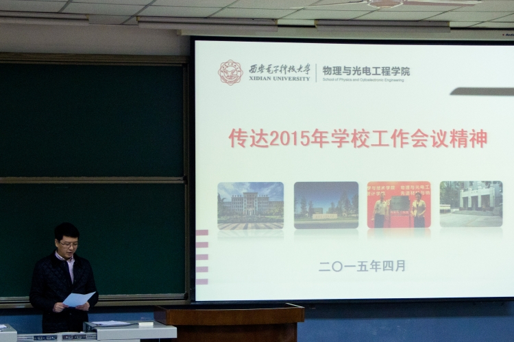 学院党委书记杨光暐传达了学校2015年工作会议精神:学校将紧紧围绕立德树人的根本任务,扎实推动综合改革,着力推进依法治校,切实加强新形势下高校党的建设促进办学指标持续提升,推动学校内涵发展、和谐发展和特色发展迈上新台阶。同时,他指出学院工作将紧密结合学校发展的战略方向和要求,更加注重内涵发展、特色发展、创新发展、需求导向。他强调,学院必须抓住历史机遇,通过深化学院综合改革来解决发展难题、突破发展瓶颈;坚持依法办学、依法治院,加强学院民主管理;并沉下身子,埋头苦干,从而奠定学院发展基础。