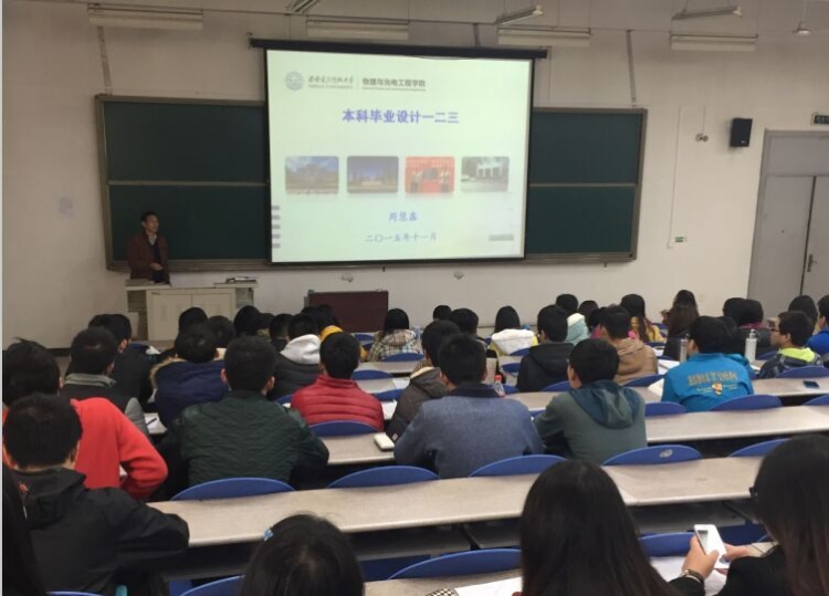 (通讯员:史公鹏)2015年11月26日上午,由校教务处和物理与光电工程学院联合举办的“2012级本科生毕业设计(论文)宣讲会”在南校区B-442教室召开。学院2012级全体学生参加了动员会,会议由教务处实践科胡晓娟老师主持,物理与光电工程学院副院长周慧鑫教授主讲。