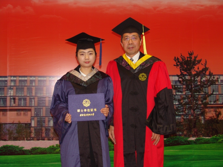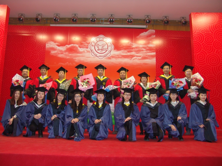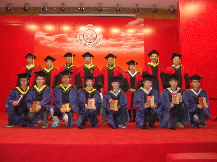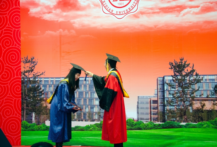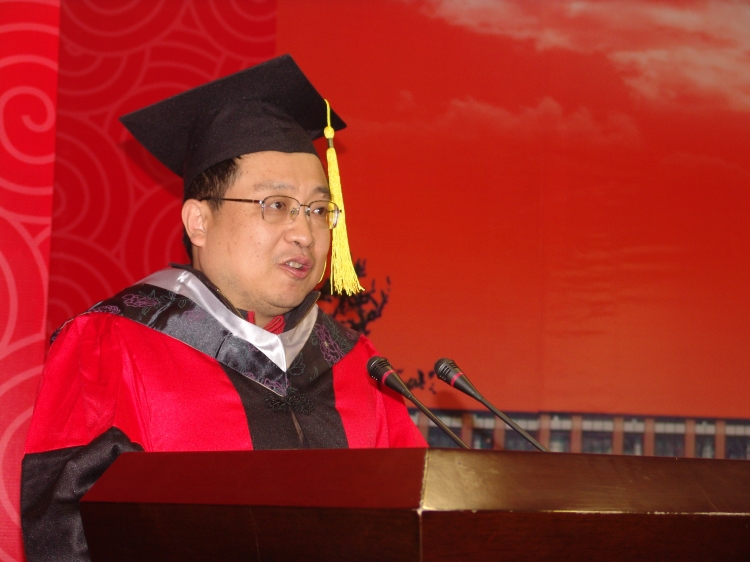 伴随着悠扬的音乐声,毕业生们身着深蓝底色硕士服,列队整齐,依次登上主席台。李建东为同学们执拨穗礼、颁发学位证书,并和同学们逐一合影留念。