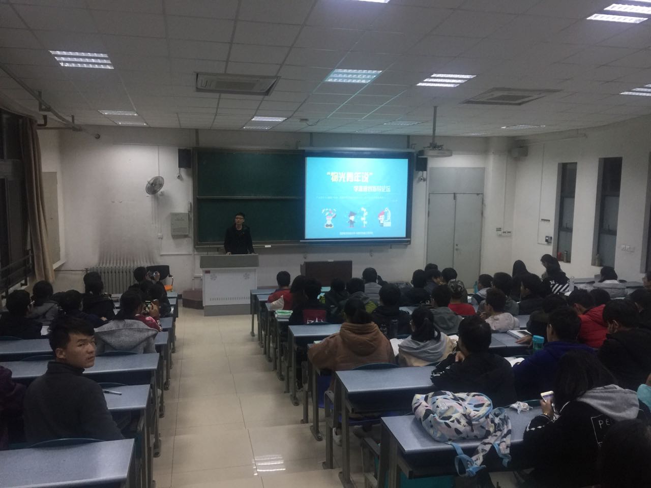 讲座于七点开始,首先张乾同学为大家推开未来四年大学生活的大门。作为已经保研清华的大四学长,他在演讲中,毫无保留的向在场的同学介绍自己的经验,鼓励大家从大一就好好学习,多了解各种知识,面对同学的疑问,他热情答疑解惑,并且提出自己的建议和看法,强调大家应该注重课堂,把握课堂。学长的热情使得现场掌声不断。接下来由研一学生杜晓宇为大家详细介绍了大学生活,对大学生活分段,合理安排时间,在演讲中旁征博引,并且以她自己的亲身经历为大家解惑,让大家对以后的学习有了更深刻详细的认识。最后王湾为大家介绍了自己的经验,幽默风趣的语言让她的演讲更能让新生们接受,她在为大家规划大学生活方面更是不遗余力,详细介绍了大学学习可能遇到的问题,保研注意事项等等。在三人报告结束后,仍然有不少新生向几位同学提出了自己的疑问,面对每个问题,他们都耐心细致的解答,相互补充,使得每位同学都在这场讲座中受益良多。