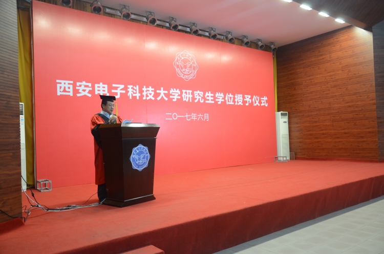 6月25日下午,物理与光电工程学院2017届硕士毕业生学位授予仪式在科技楼报告厅举行。副校长杨银堂、学位委员会成员、教师代表及2017届硕士毕业生参加了授位仪式。仪式由学院执行院长郭立新教授主持。