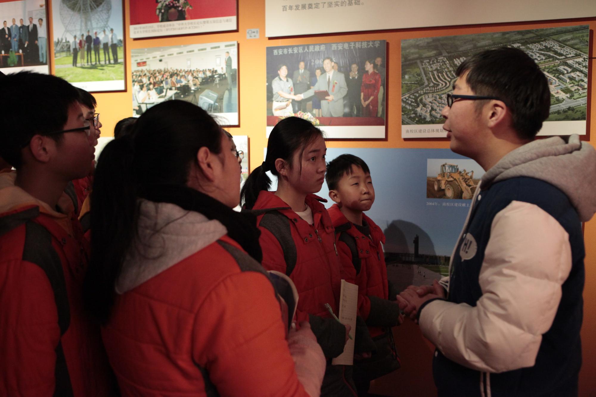 参观活动在“全心全意为人民服务”的主体雕塑前正式展开,工作人员向来访师生介绍了“全心全意为人民服务”的题词来历,以及十根立柱雕塑上代表学校发展的奋斗之路和学科之基。在校史馆,来访师生进一步了解PA捕鱼官方网站的办学历程。毛主席、朱总司令等老一辈革命家的题词、一幅幅老照片引来大家纷纷关注,“半步电台起家”“长征路上办学”的生动故事更得到了大家对西电光荣校史的由衷赞叹。