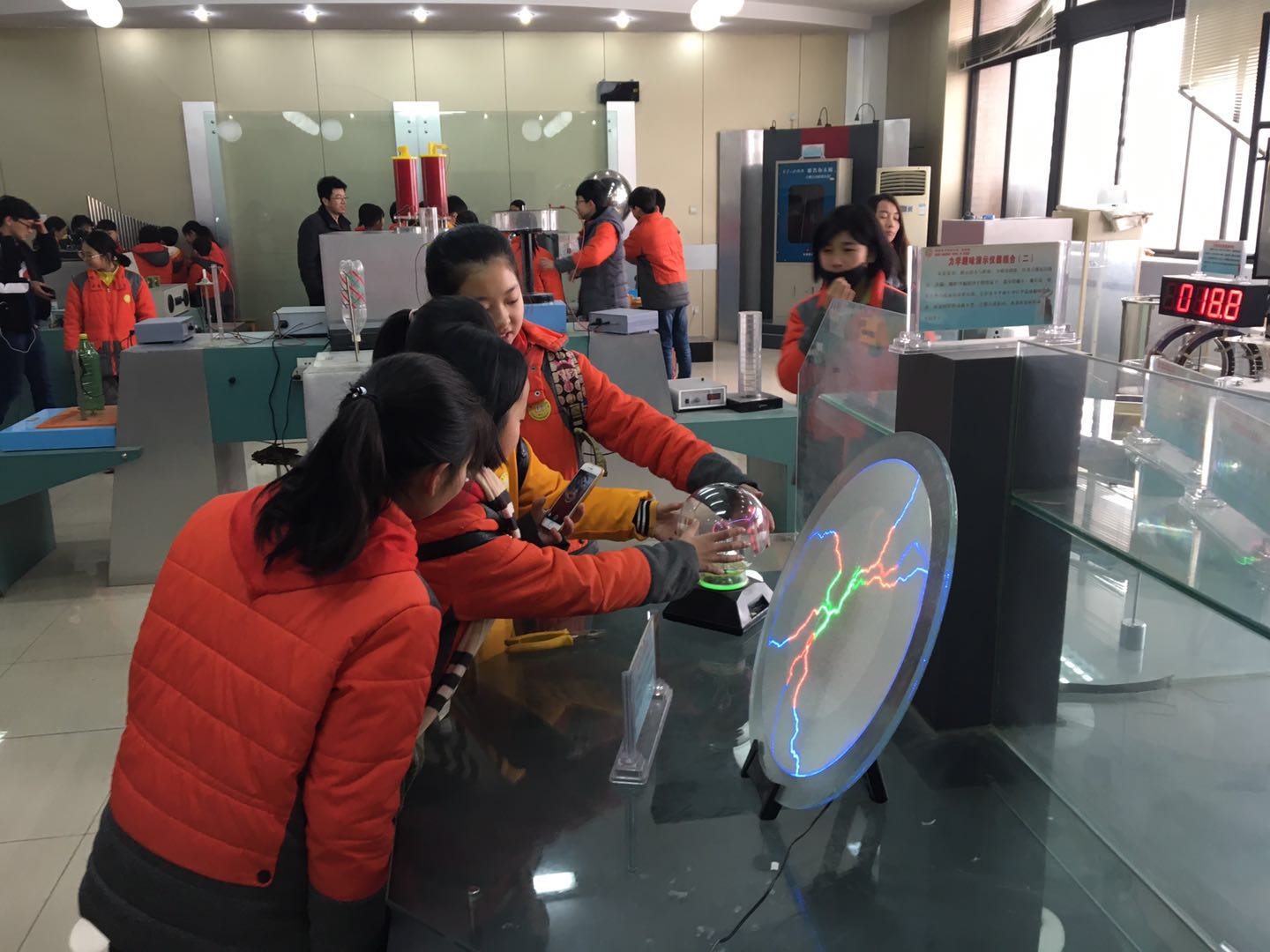 在学院物理实验中心的老师们的引导下,同学们参观了学院物理教学实验室,物理实验演示中心和光电技术实验中心。在这里,同学们真正感受到了物理的魅力,尤其是在实验演示中心,同学们争先恐后地要求实际体验演示实验,一个个教学实验仿佛将同学们带入一个物理的乐园。同学们纷纷表示,实验非常有趣,以后要学好物理,真正理解今天看到的一个个神奇的现象。
