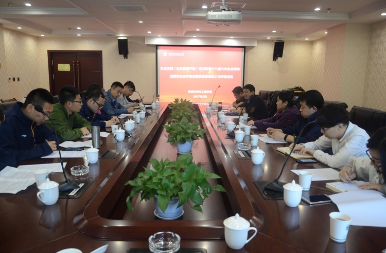 5月6日,物理与光电工程学院机关举办学习贯彻十八届六中全会精神暨加强和改进学院党建和思想政治工作研修活动,学院机关全体党员和管理干部共18人参加,党委书记杨光暐主持会议。他指出,今年是学院党委全面贯彻落实十八届六中全会精神和全国高校思政会议精神的关键一年,要把加强和改进党建和思想政治工作作为学院工作的重中之重,扎扎实实抓党建,凝心聚力促发展。机关党支部要切实发挥好“一个支部一座堡垒,一名党员一面旗帜”的作用,不断探索创新支部建设,把立德树人、规范管理的严格要求和春风化雨、润物无声的灵活方式结合起来。要在学院党支部建设中带好头,起到示范作用。
