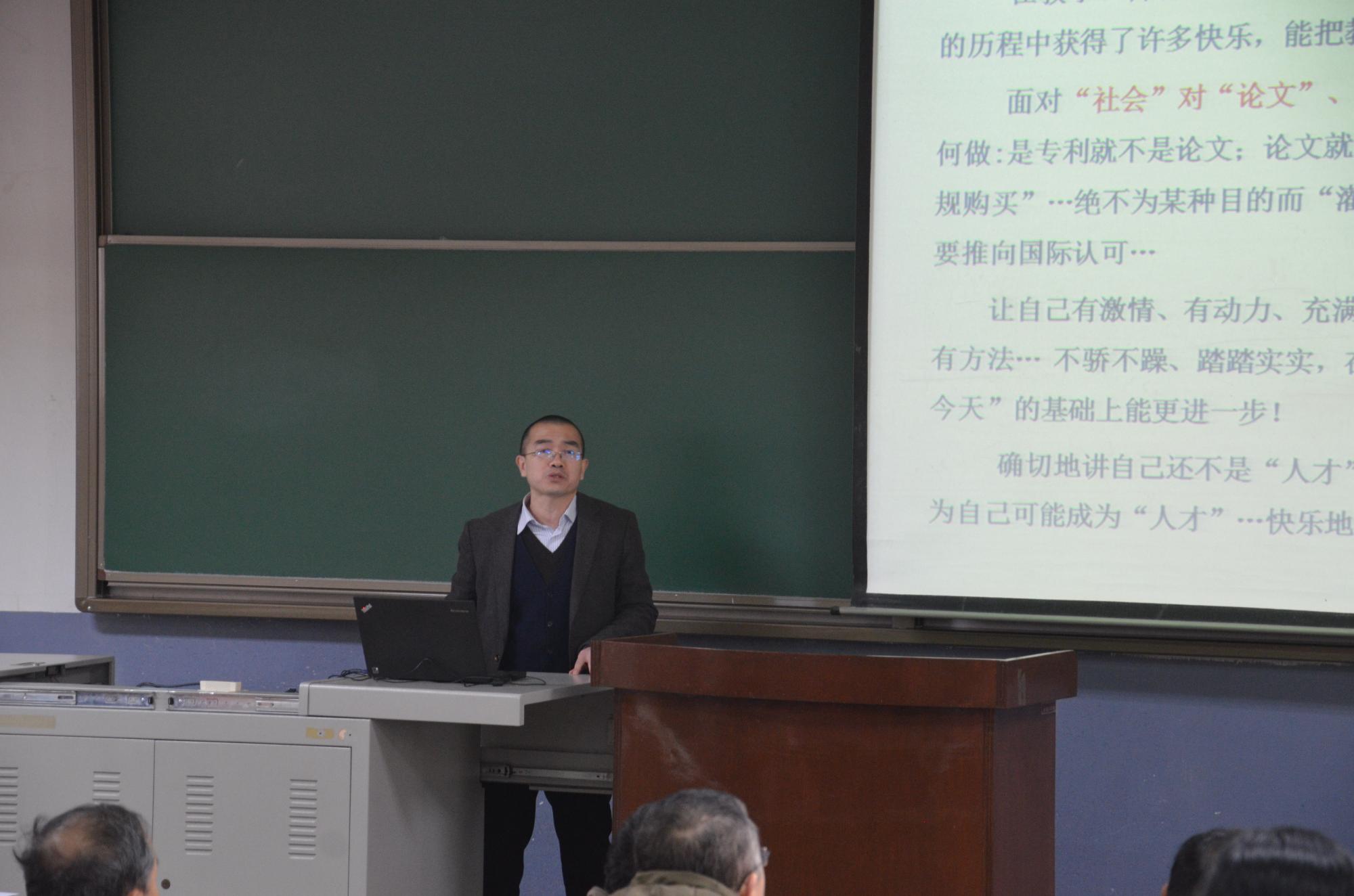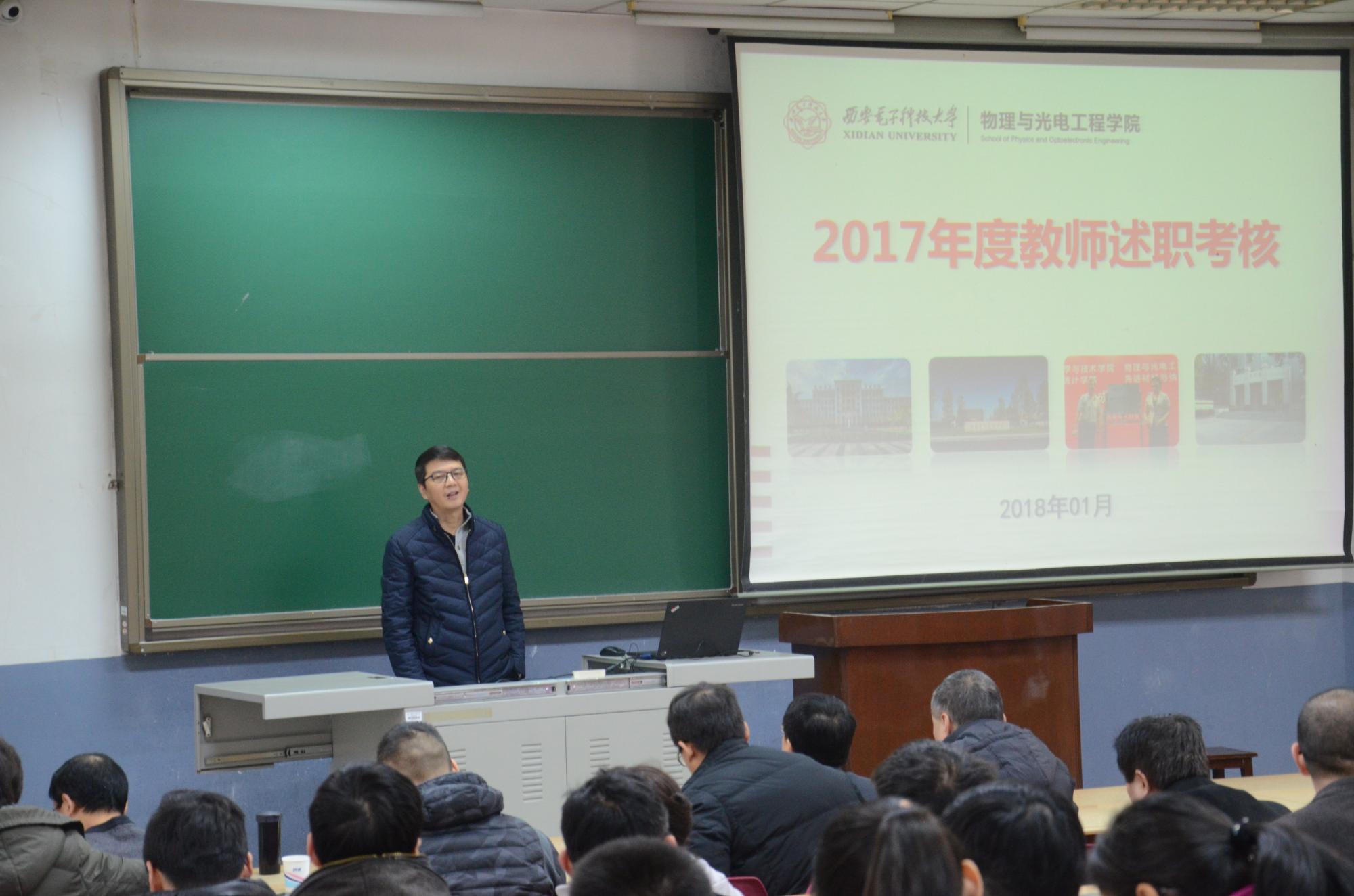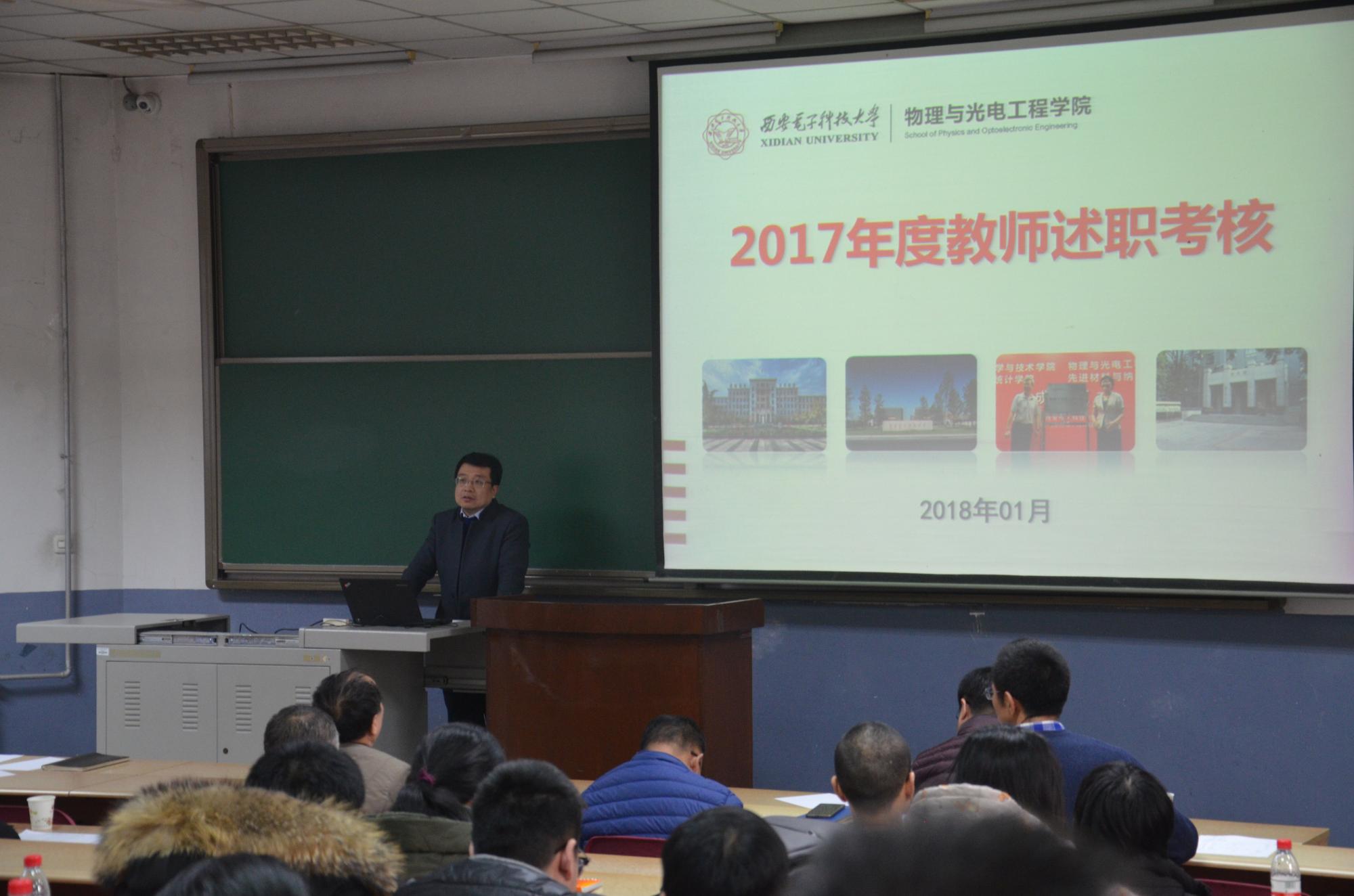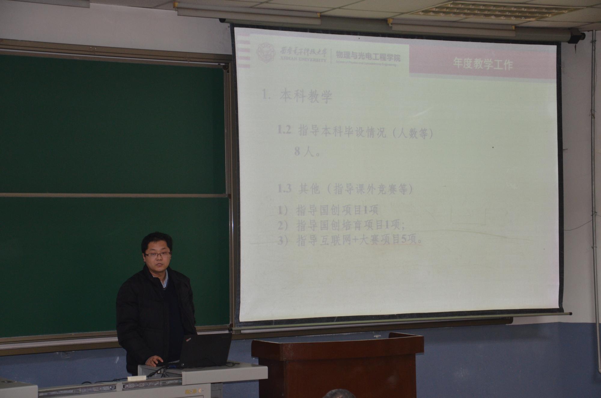1月21日下午14:00,物理与光电工程学院于北校区J-101教室举办2017青年教师年度考核述职报告会,学院40周岁以下青年教师逐一上台,就本年度的工作成果进行总结汇报。学院领导班子、学术委员会全体成员作为评委参加本次活动,学院全体教师与会,参与整个活动全过程。报告会由学院党委书记杨光暐主持。