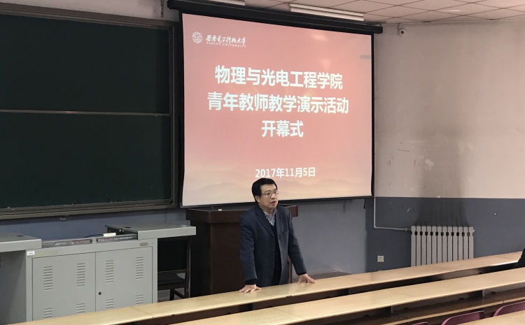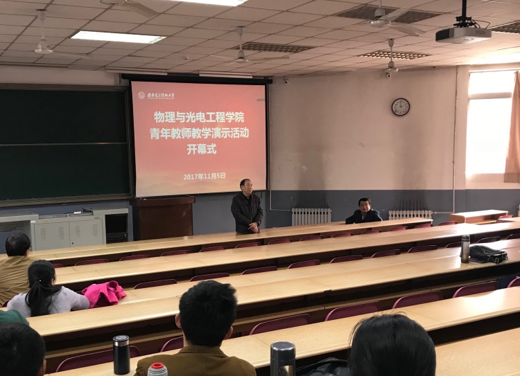 (通讯员 柴亚茹)为迎接教育部专家组将于11月20日至23日进校开展的本科教学审核评估工作,同时进一步加强青年教师队伍建设,促进青年教师教学水平的提高,物理与光电工程学院于11月5日下午在北校区阶梯教室开展了青年教师教学演示活动,活动由教学副院长李平舟主持,各系室主任及多名具有丰富教学经验的21名资深专家组成评委小组,对参与活动的青年教师进行了现场点评,院长郭立新出席了开幕式并致辞。