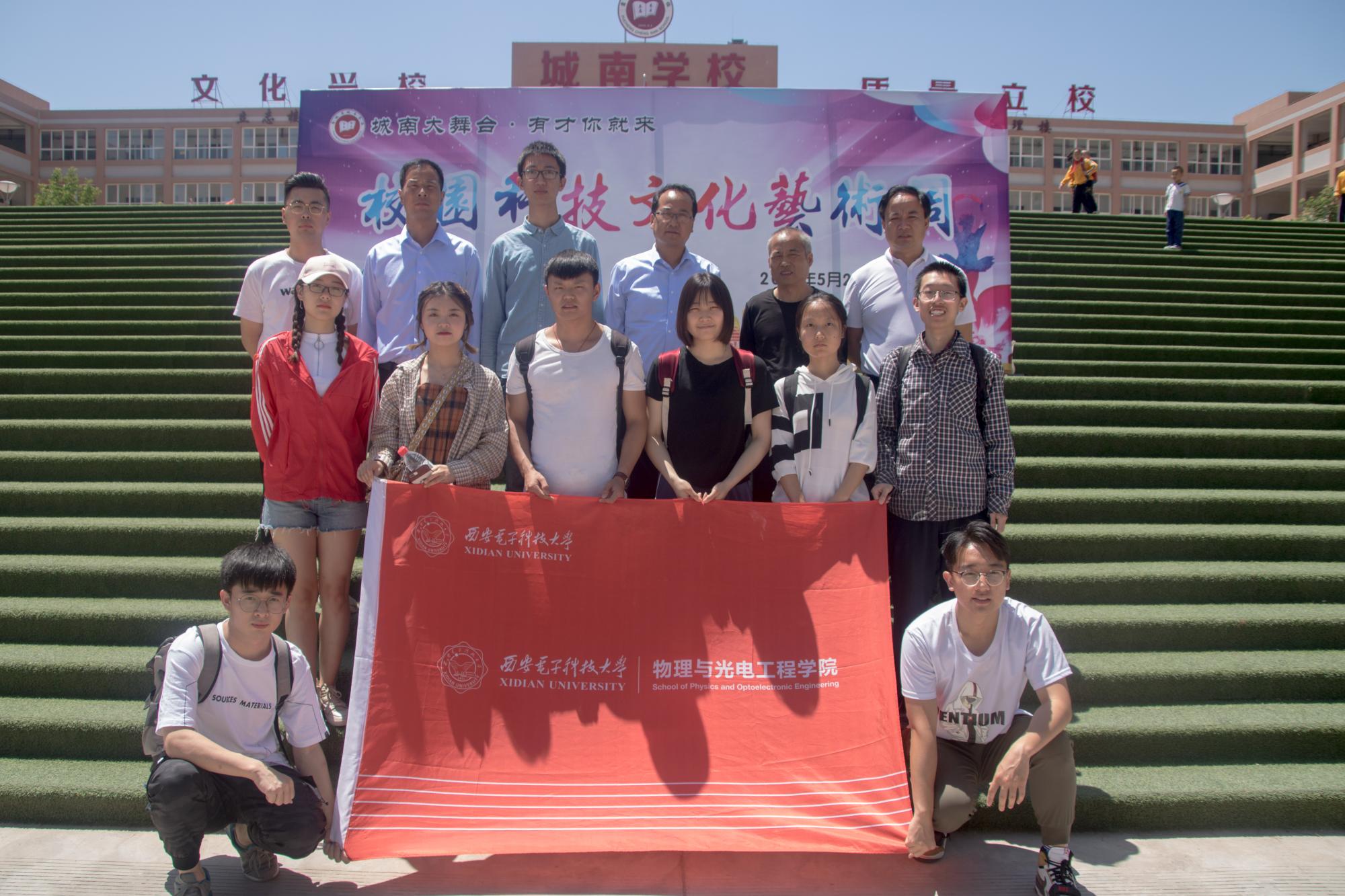 (通讯员:马忠林)5月22日上午,物理与光电工程学院师生代表在蒲城县城南学校举办“科学文化艺术节”之际,前往城南学校开展科技作品展示活动。本次活动由2018级本科生辅导员王晨辉带队,学院学生会、科协等部分学生干部共同参与了本次活动,蒲城县城南学校党支部书记苏安文、校长许顺强、副校长蒲小明接待并参与了相关活动。
