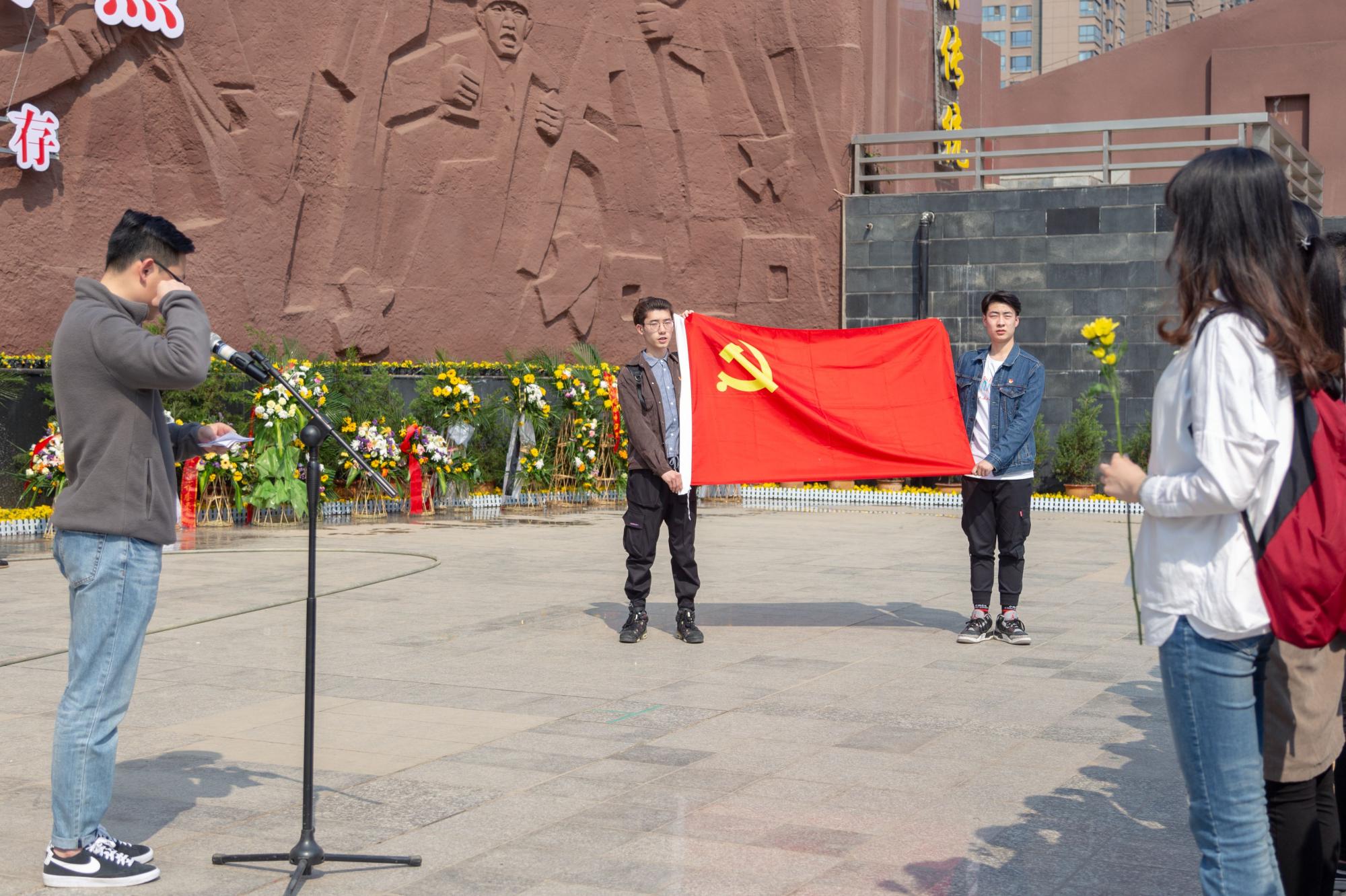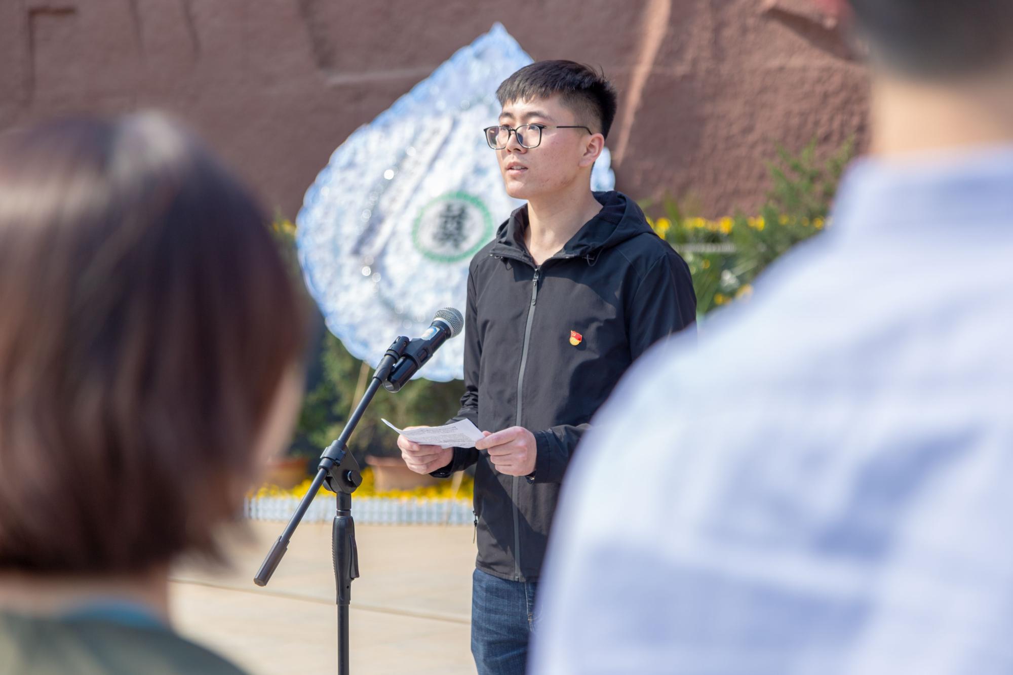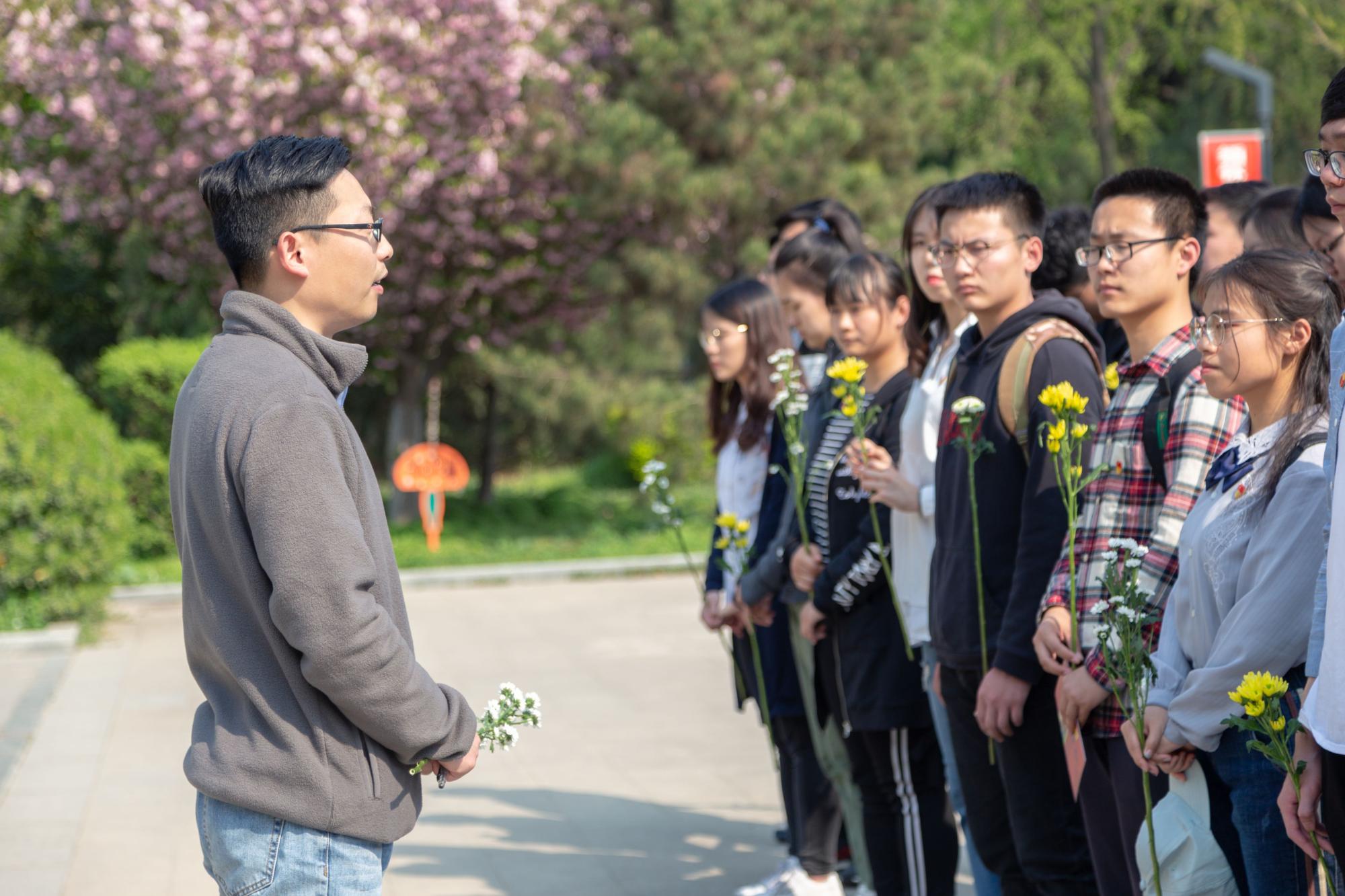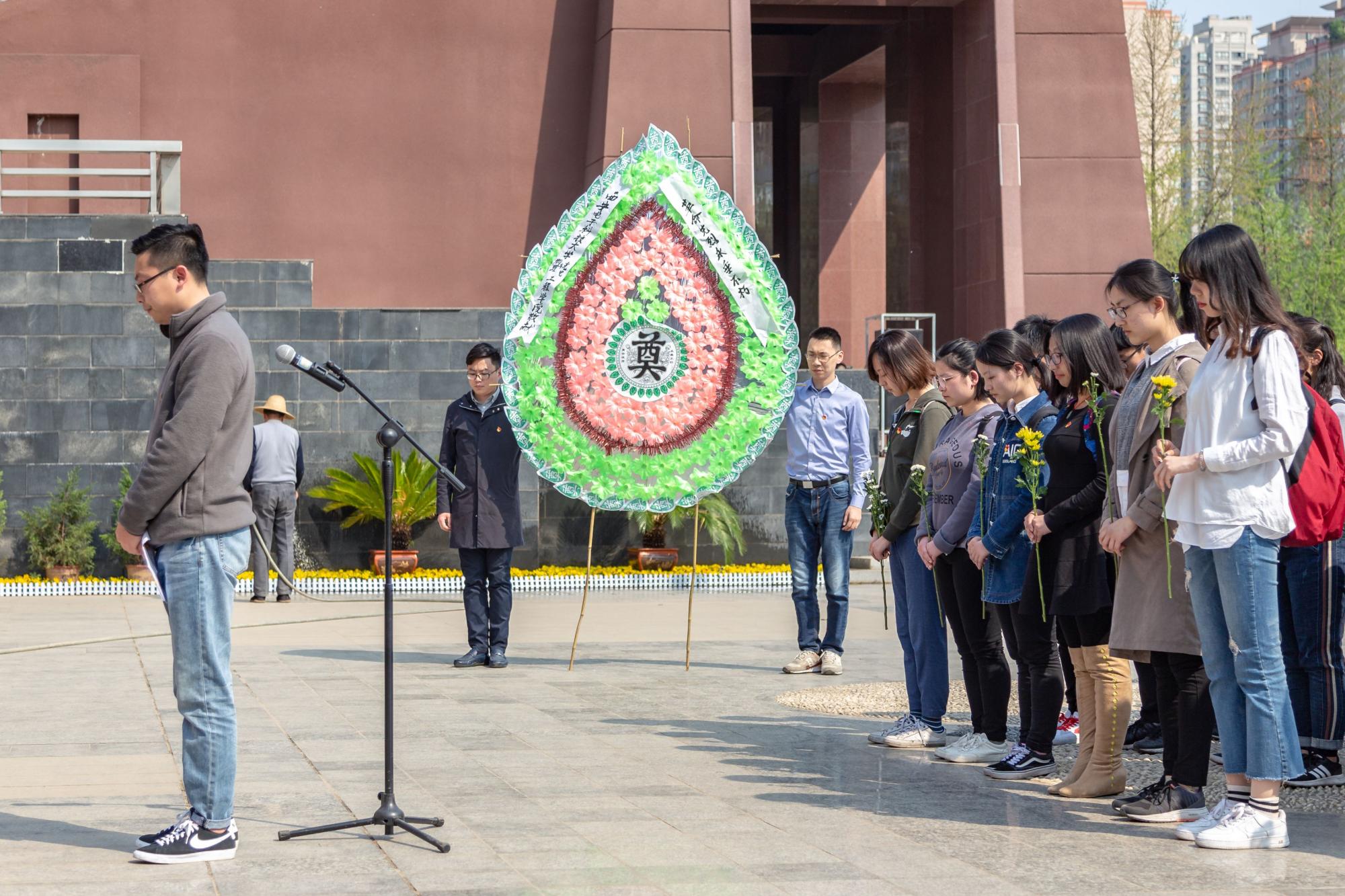 肃穆的陵园中,缕缕春风,诉不尽对革命烈士的无限深情。 无言的翠柏,标示着烈士们的精神;沉默的微风,拂动着学院本科生党员的心绪。下午两时许,祭扫仪式正式开始。首先,全体党员在鲜红的烈士纪念碑前默哀三分钟以寄托对革命先烈的无限哀思。接着2017级辅导员田宪、刘昕玮代表大家向烈士敬献花圈,表达对革命先烈的崇高敬意。学生党员代表王佳乐发言,铿锵有力的话语表达了自己对革命烈士的崇敬以及继承发扬革命先烈精神的渴望。随后2016级辅导员史公鹏讲话,希望党员同志们能够珍惜这来之不易的生活,加强党性修养,积极发挥党员先锋模范作用,引导身边同学发扬“艰苦奋斗、自强不息,求真务实、爱国为民”的西电精神。然后,史公鹏带领大家重温入党誓词,引导每一位党员坚定理想信念,不忘初心、牢记使命,砥砺奋进。最后,全体师生环绕纪念碑一周,将手中的鲜花献于纪念碑前,表达对烈士们的缅怀之情。