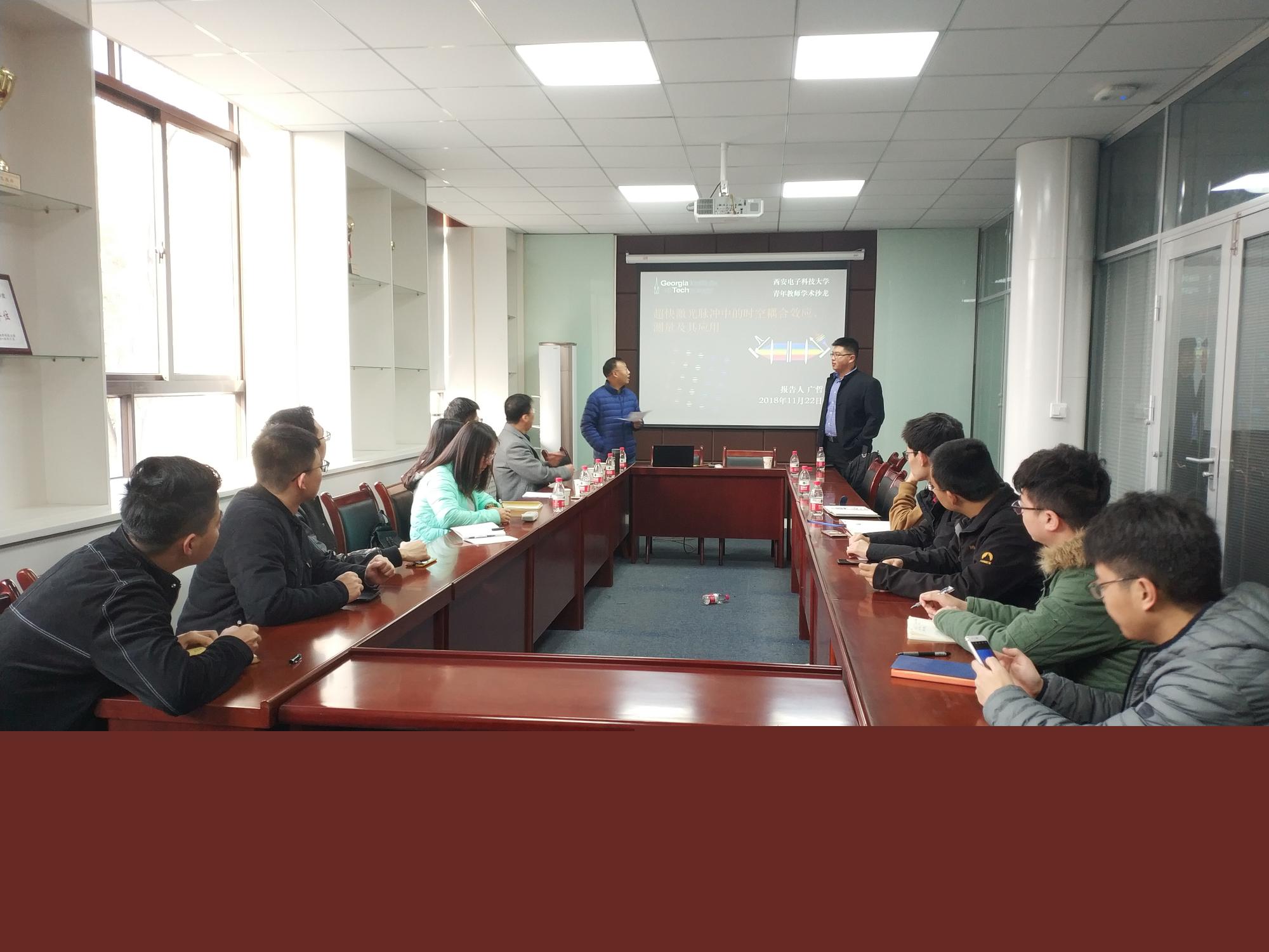 2018年11月22日上午,物理与光电工程学院举行“青年教师学术沙龙”活动。来自佐治亚理工学院的广哲博士给大家带来了题为“超快激光脉冲中的时空耦合效应、测量及其应用”的学术报告。本次学术沙龙由物光院青年教师沙龙理事长、激光技术系主任朱江峰教授主持,学院青年教师和研究生二十多人参加了活动。