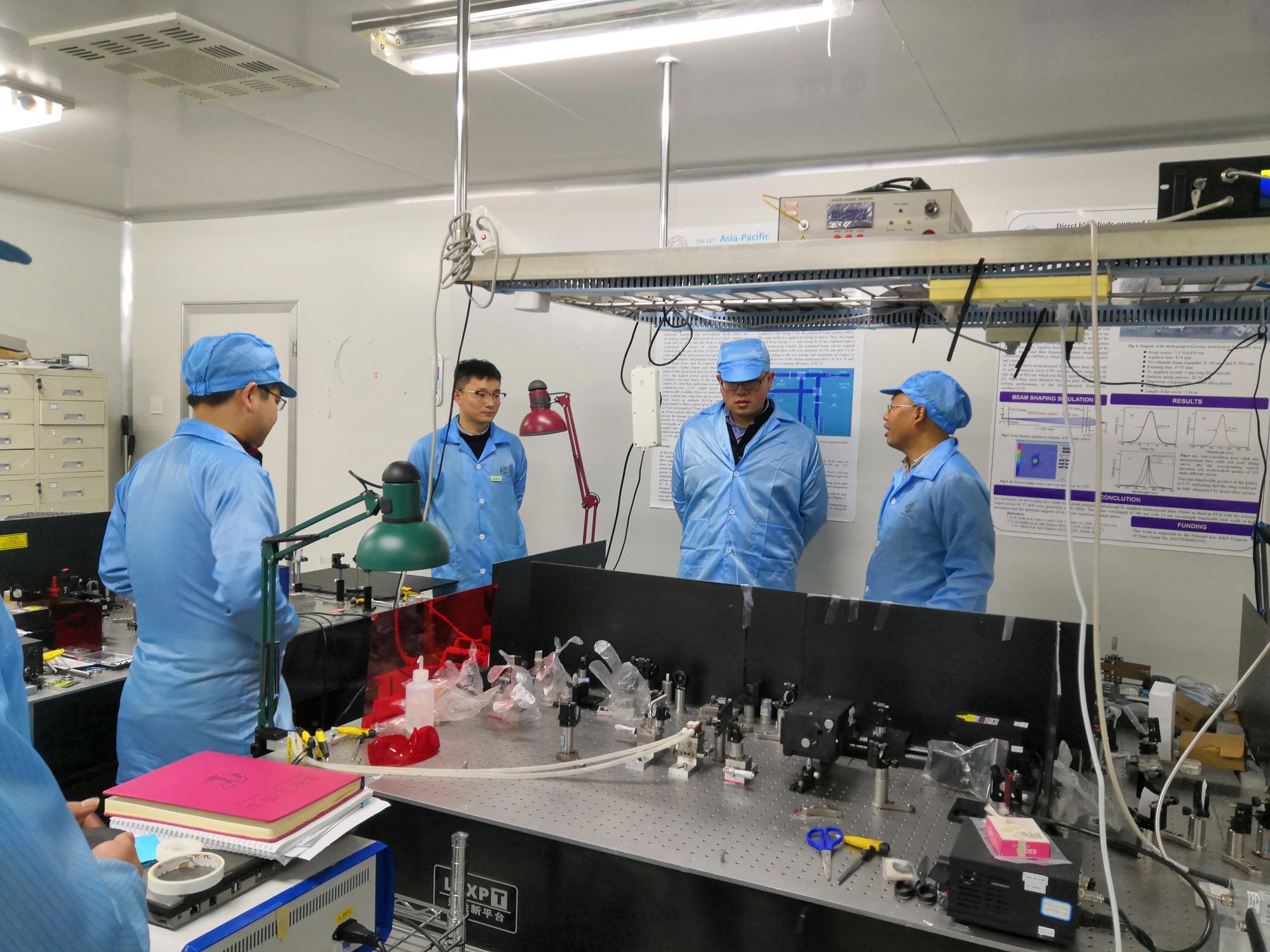 随后,朱江峰邀请广哲参观了超快激光技术与应用研究中心实验室,对研究中心目前的研究方向和研究成果进行了介绍,双方就感兴趣的超快脉冲测量技术等进行了讨论。