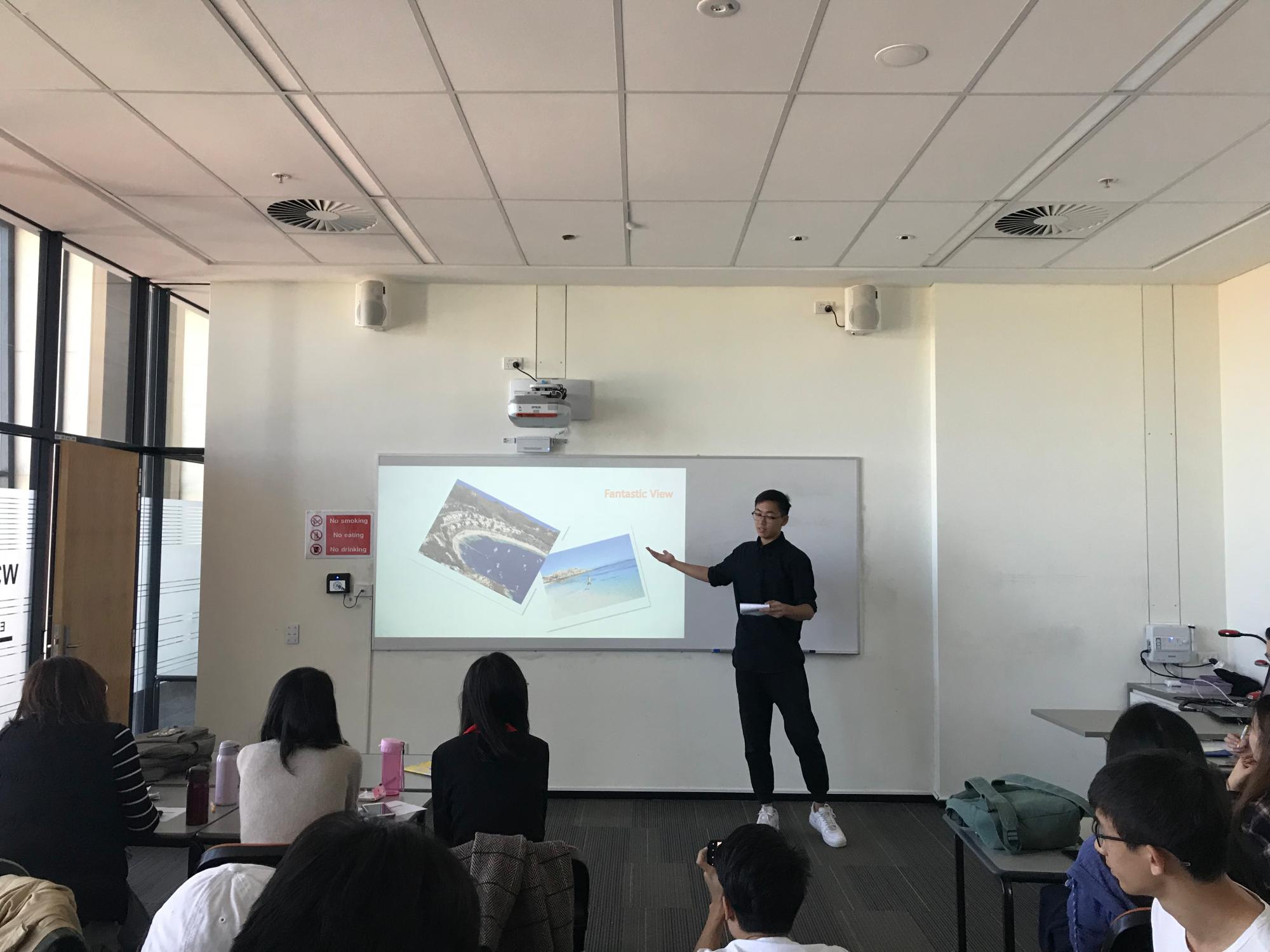 英语的学习课程在语言中心展开,学生们在Cynthia和Simon两位老师的指导下开启了语言文化的学习课程。与平常的课程学习不同,老师们在课堂上着重于与同学们展开思想交流。课堂上同学们主动思考,积极发言和提问,在短暂的学习中体验不一样的教学模式,课程的最后,老师对同学们课堂当中的出色表现及课程最后的presentation给予了很高的评价。