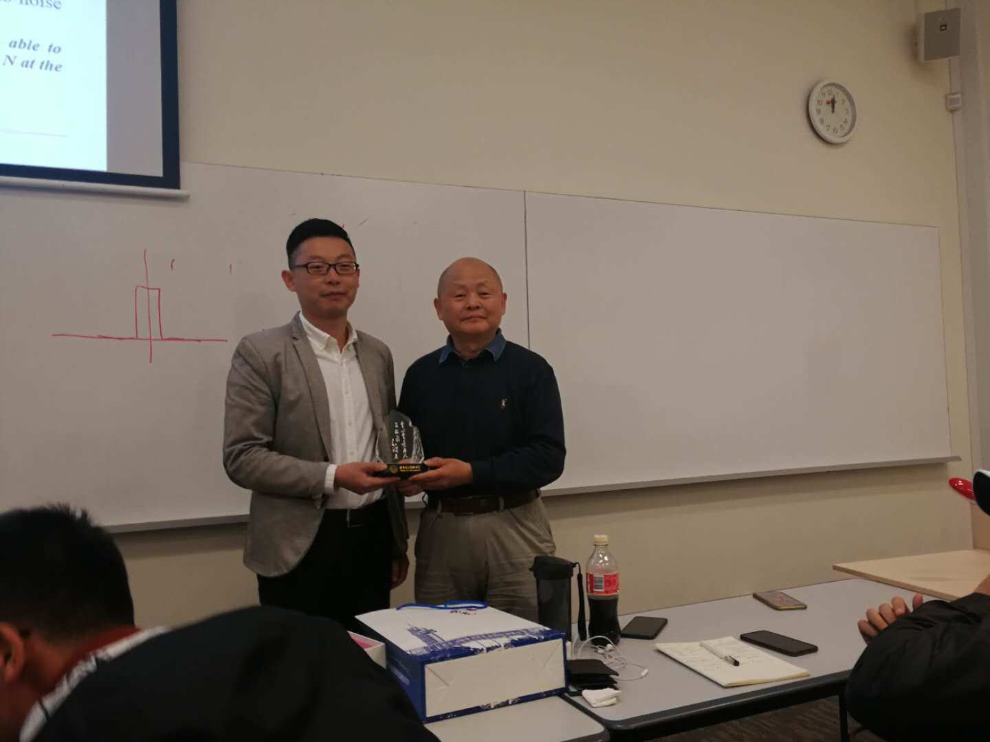 与此同时,访学团一行也注重宣传学校、学院,积极同国外名校建立联系。带队老师史公鹏向Gang-ding Peng教授赠送了富有西电特色的纪念礼物,介绍了学校、学院近年来的发展情况,并邀请Peng教授来院进行学术访问。Peng教授对学校、学院的发展给予高度赞许和浓厚兴趣,表示将会择期前往访问交流。