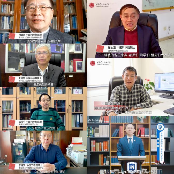 视频致辞环节,78级校友王中林院士首先在线上回顾了自己在西电学习的难忘经历以及科研工作的心得感悟。他表示新学院的成立对于学校在加强基础研究和提升原创能力方面意义重大,有利于加快推动跨学科研究和新兴交叉学科建设。希望新学院今后能够在核心技术领域实现突破,培养出更多优秀的科研人才。谢心澄、王玉鹏、侯洵、褚君浩、武向平、王建宇、骆清铭、李得天等8位院士也纷纷表达了对新学院建设发展的殷切期待和美好祝愿。