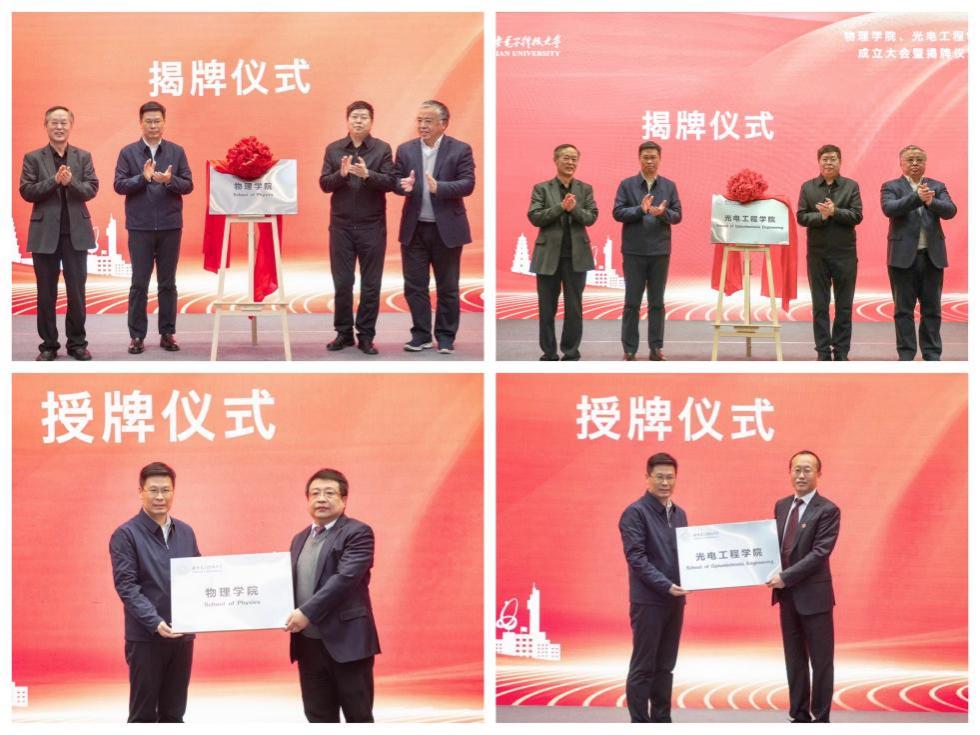 党委书记查显友与赵怀斌、袁宁、马彩文共同为PA捕鱼官方网站、光电工程学院揭牌,并向新学院的院长正式授牌。