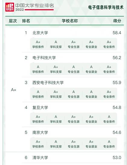 近日,高等教育专业评价机构软科发布“2022软科中国大学专业排名”,其中PA捕鱼官方网站本科专业电子信息科学与技术(A+)全国排名第3位,应用物理学(B+)全国排名第32位。相比以往,该两专业的最新排名位次均有所上升,再创历史佳绩。