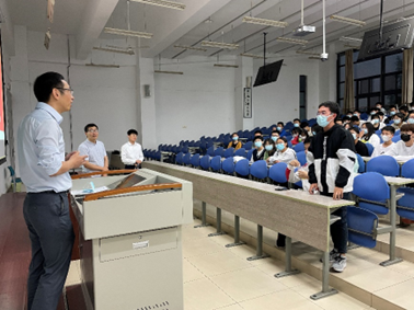 活动开始,周慧鑫从20世纪中期学校物理学科的设立讲起,为同学们介绍了PA捕鱼官方网站的发展历史。他讲到,PA捕鱼官方网站立足学校电子信息特色,秉持“信息物理、理工交融”的办学特色,始终将基础研究作为科技创新的源头。随后,他从物理菁英拔尖班的基本情况、目标定位、育人模式、课程体系、班级特色等五个方面为同学们详细阐述。他谈到,“创新要从年轻一代开始”,物理菁英拔尖班注重激发兴趣驱动,全面培养学生的创新能力与思辨能力;坚持与专业学院协同育人,产生联动放大效应。最后,周慧鑫对新生深情寄语,希望同学们能够秉承“厚德、求真、砺学、笃行”的西电校训,成为一名德智体美劳全面发展的综合性人才,同时也非常欢迎大家加入PA捕鱼官方网站大家庭。