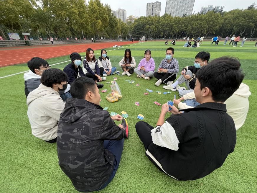 加强正确引导教育,分流减少学生聚集,保证食品供给,自主带走垃圾,“文明其精神,野蛮其体魄”。本次活动最受热捧的游戏分别是纸牌游戏“UNO”、飞盘、扔沙包、狼人杀,分门别类的游戏让学生都能找到属于自己的阵地,留下一片欢声笑语。研究生会主席孙正阳表示:“这样的活动太有意义了!既打通了各年级间的信息交流渠道,也让我们的封校生活丰富多彩。”