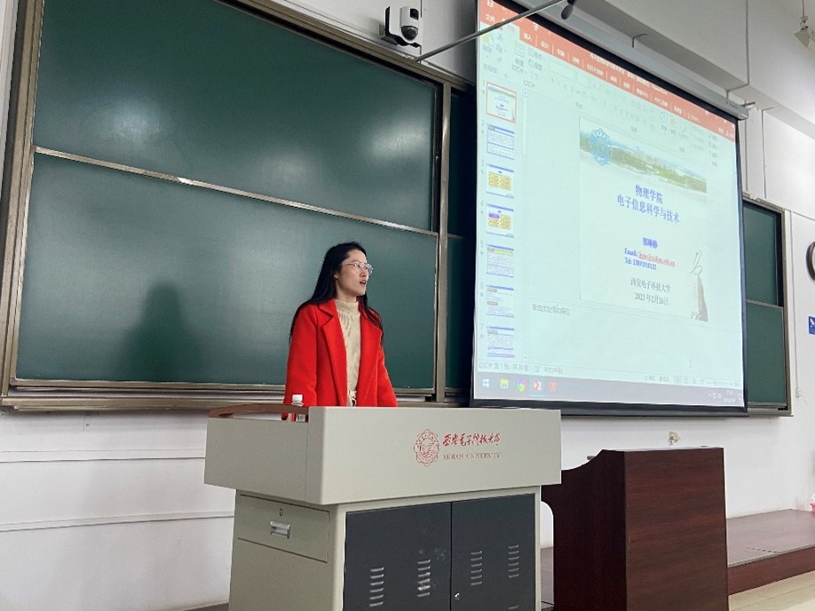 郭琳静老师从自身大学学习经历出发,详细介绍了自己在大学有效学习方法和方式,鼓励学生在课堂学习的基础上,利用好学校教育信息化的优势,借助图书馆、“西电智课”平台、各类MOOC资源等现代工具,培养自己主动学习习惯。此外,她详细介绍了自己的研究方向和科研团队情况,邀请感兴趣的同学参与并了解自己的科研项目,以项目实践为抓手强化对专业的认知。