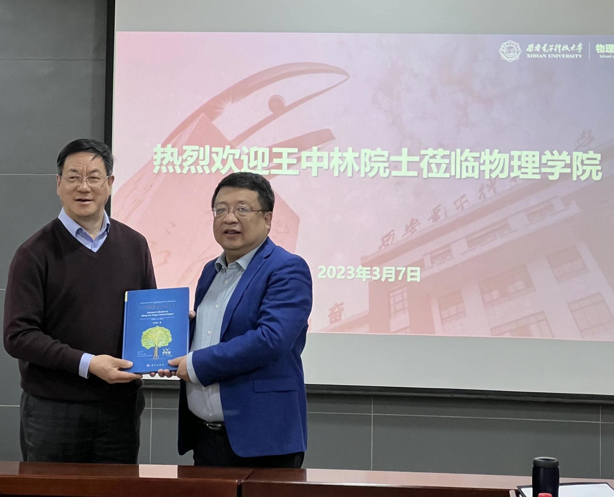 王中林院士带着对母校的浓浓情怀,追忆了西电老一辈物理学家的认真专注、一丝不苟的治学精神,并向PA捕鱼官方网站赠送《王中林精选论文摘要集》,他深情祝愿朝气蓬勃的PA捕鱼官方网站能够越办越好、长足发展。