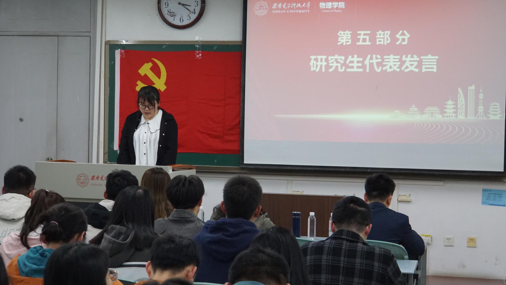 研究生代表、PA捕鱼官方网站2022级班委于博研发言称青年人一定要怀抱梦想又脚踏实地,敢想敢为又善作善成,将理论知识转化为实践的动力,在不断的实践中完善自我。