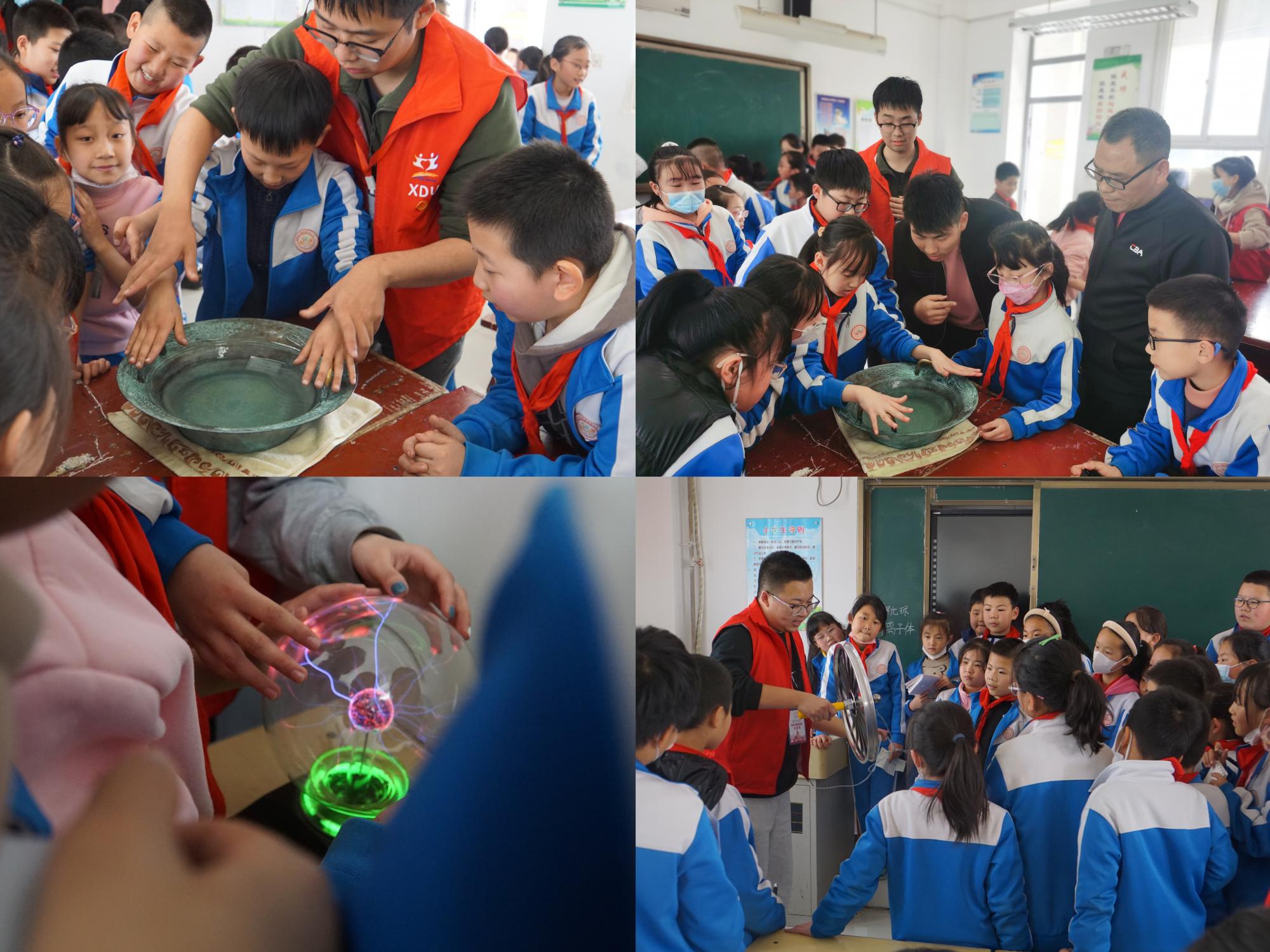 (通讯员 邵思颖 景玉)为深入学习宣传贯彻党的二十大精神,立足社区需求,聚焦西电特色,把社区实践做“实”,4月7日下午,PA捕鱼官方网站志愿者服务队伍前往高新区第三十六小学,以激发学生科技兴趣为主题,开展了物理知识科普、物理趣味实验教学等志愿服务活动,带领孩子们走进科学,感受科学,喜欢科学。本次活动由PA捕鱼官方网站团委负责人罗庆辉带队,辅导员景玉及物理志愿者服务队的20余名同学共同前往,西安高新区第三十六小学党支部书记、校长徐利民、副校长赵建锋和校办负责人李蕴韬老师共同参加活动。活动依托PA捕鱼官方网站实验室的众多趣味仪器,根据学生年龄和实际科普内容,设计了有趣的物理实验,让孩子们切身体会到物理的魅力所在,激发孩子们内心对于科学的学习热情。