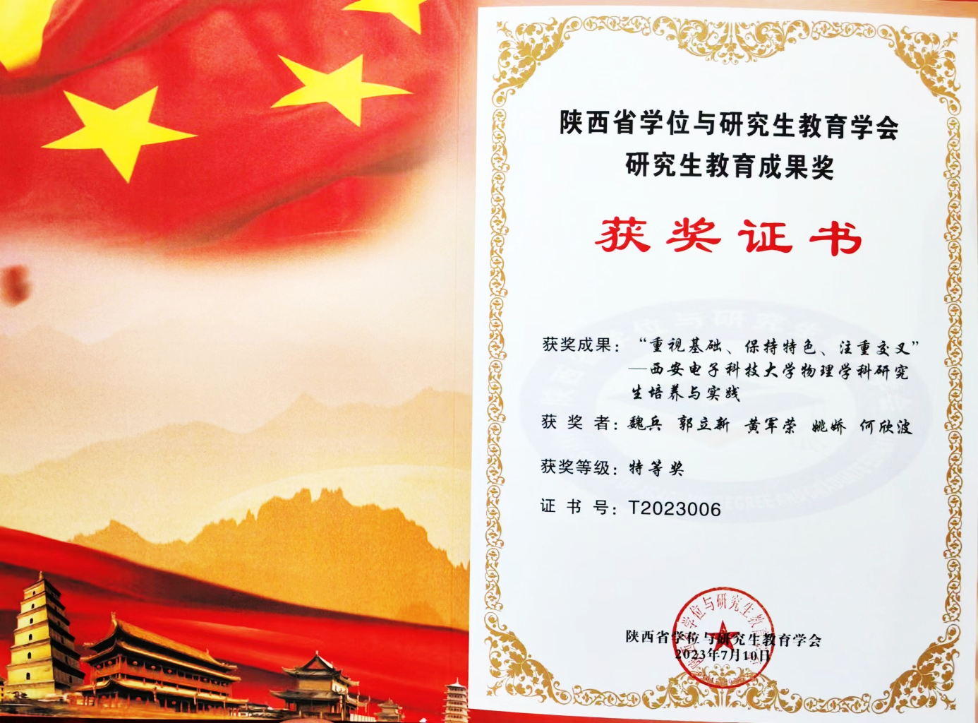 (通讯员:姚娇)近日,陕西省学位与研究生教育学会公布了第三届陕西省学位与研究生教育学会研究生教育成果奖评审结果,PA捕鱼官方网站申报的5项成果获得奖励,其中特等奖2项,一等奖1项,二等奖2项。PA捕鱼魏兵教授领衔的团队完成的研究生教育成果“重视基础、保持特色、注重交叉——PA捕鱼官方网站物理学科研究生培养与实践”荣获特等奖。