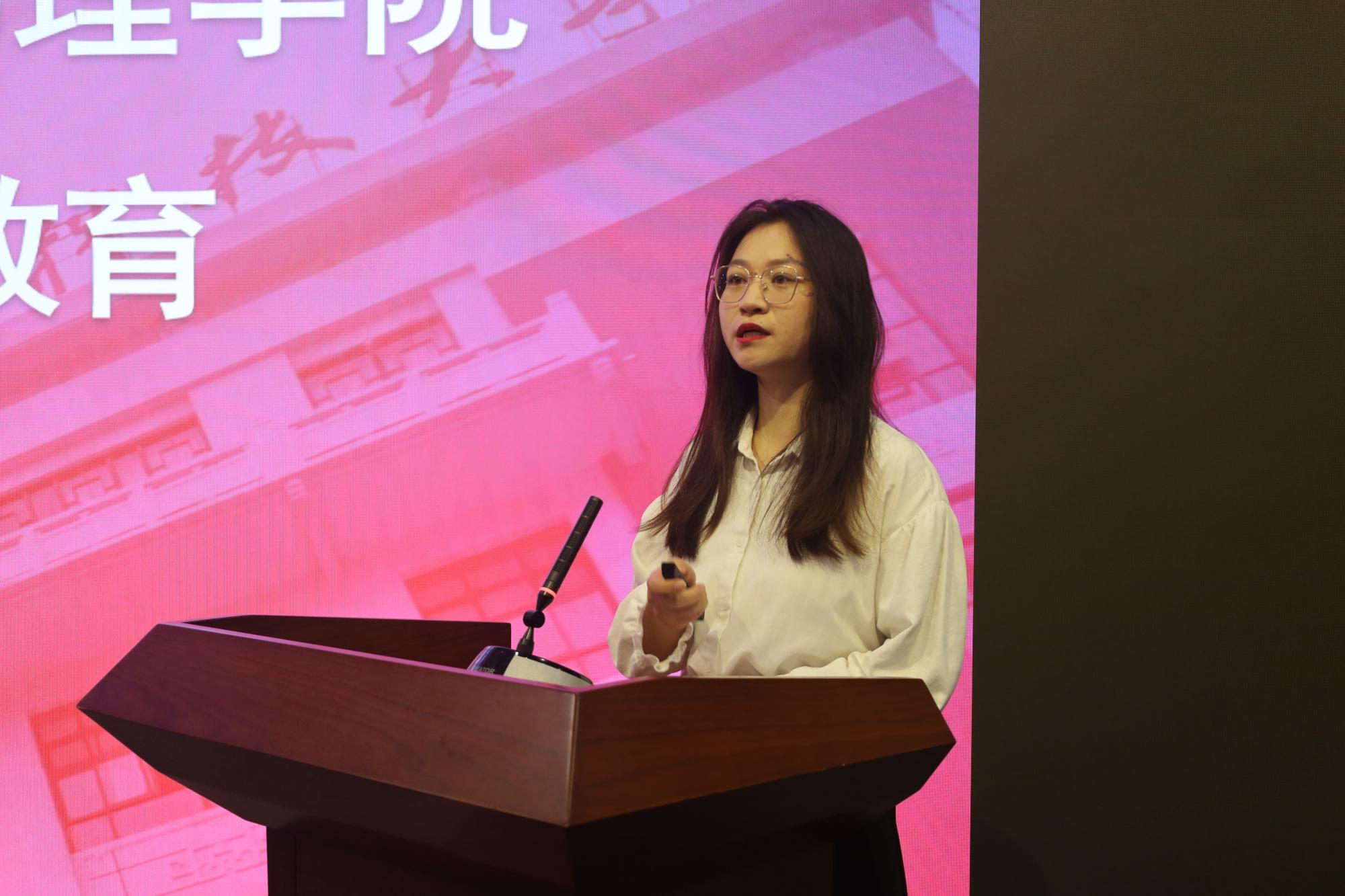 刘美玲同学表演歌曲《喜欢你》后,研究生培养干事姚娇和研究生辅导员分别就研究生培养环节、学校奖助体系情况进行了讲解与答疑。