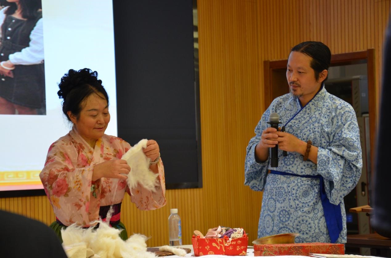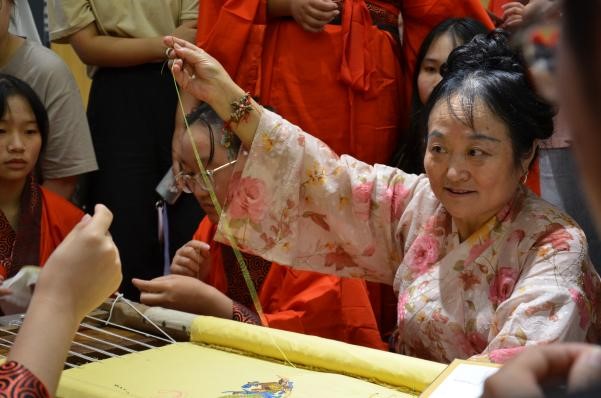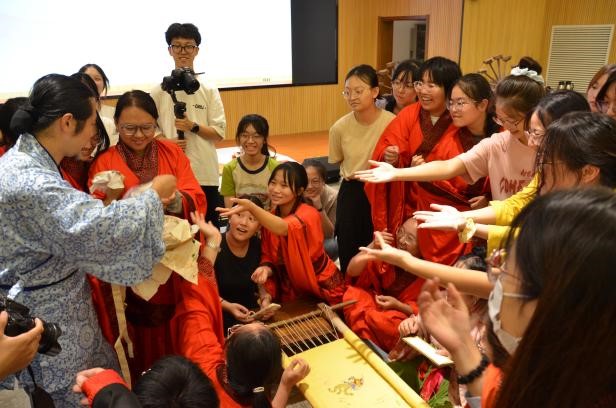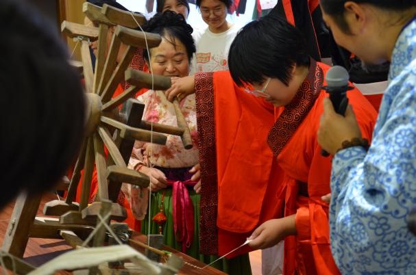 在本次活动中,学院特别邀请到华服非遗项目传承人姜姗秀、赵晁艺为同学们讲解汉服织造过程、带领同学们体验华服手工织造技艺,让同学们在实践过程中提升传统文化素养及对非物质文化遗产的传承保护意识。