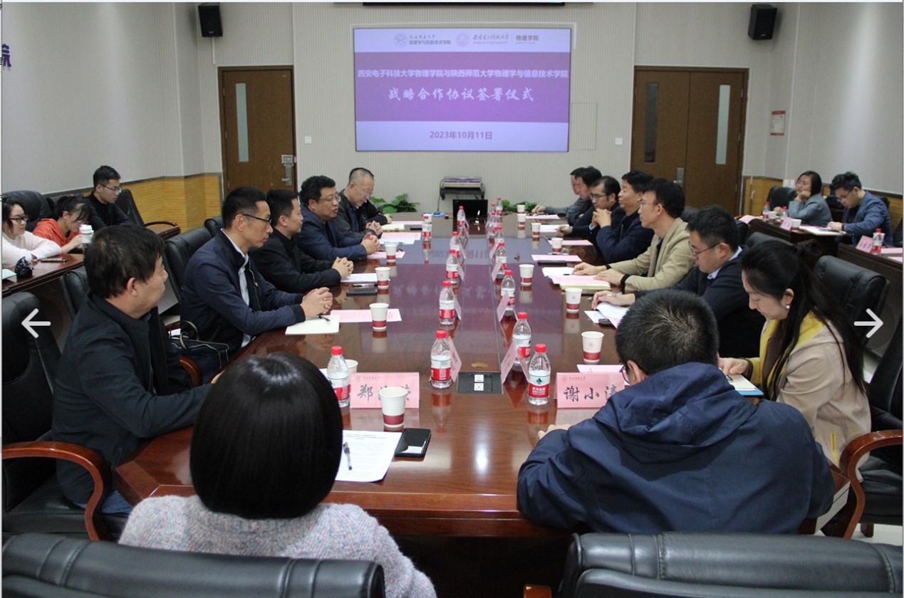 为推动PA捕鱼官方网站和陕西师范大学物理学与信息技术学院在各领域的合作,提升双方人才培养水平和科研实力,实现优势互补、资源共享、互利共赢的目标。10月11下午,西电PA捕鱼官方网站院长郭立新、党委书记黄军荣带队前往陕师大物理学与信息技术学院调研并签订战略合作协议。陕西师范大学党委常委、物理学与信息技术学院院长李贵安,党委书记王启明及其他院领导等出席签约仪式。