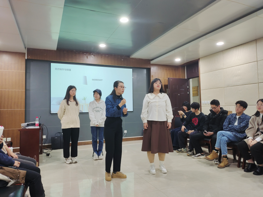 韩老师着重讲解了如何突显个人优势,强调善于发现和展示自身的特长,将自身实力置于核心位置,巧妙运用面试技巧,全方位打造自己的形象。她还以实际简历为例,逐一详解了简历制作的关键要素,并分享了一些简单实用的技巧,帮助同学们在求职中取得更大的优势。