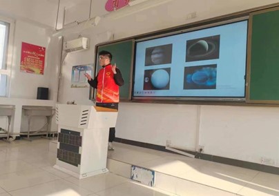 本期课程志愿者们为同学们分享了两个主题:“穿越宇宙,探寻行星之谜”和“穿越历史,了解物理科学与文化的结合”。在第一个主题课程中,志愿者们默契协作,绘声绘色地带领同学们通过图片讲解和视频演示探寻太阳系中惊险刺激的行星世界,感受宇宙广袤和神奇魅力,同时教会了同学们如何发现和分辨不同的行星,强化了基础科学知识学习能力和空间感知能力。