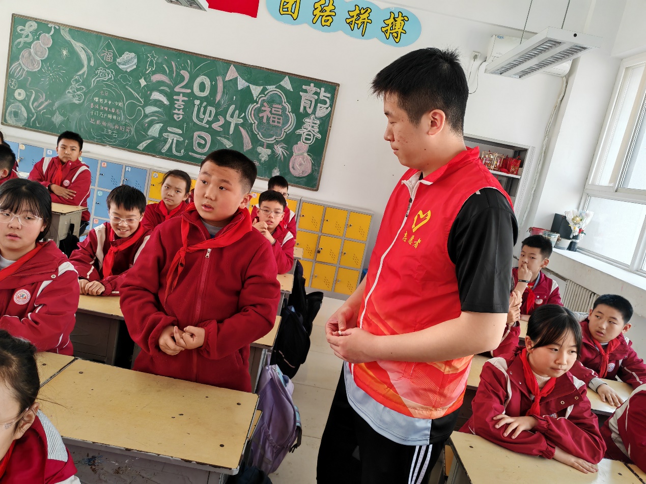 第二个主题课程中,志愿者们以手机为何能够接收和发送文字视频为例,为小学生们详细说明了从飞鸽传书时代到5G通信时代的信息传播发展过程,并且介绍了我校的电子信息学科特色。同学们听得全神贯注、意犹未尽。