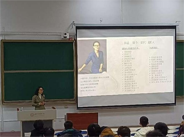 讲座伊始,韩蓝老师以独特的视角和深入浅出的讲解方式,引导同学们深入思考自己的优点和价值观,鼓励大家勇敢追求梦想和目标。她讲述了一系列生动的案例,其中包括自己蜕变为职业讲师的励志故事以及朋友的创业传奇,这些案例让同学们明白了生涯规划的重要性和方法。