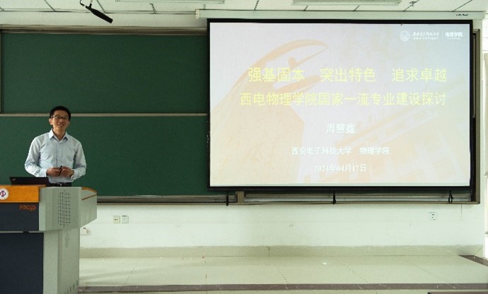 西电PA捕鱼官方网站副院长周慧鑫作了题为《强基固本突出特色追求卓越--西电PA捕鱼官方网站国家级一流专业建设探讨》的专题报告,在培养方案、课程建设、教育评价改革等方面为打造一流专业和学科建设提供参考。西电物理学院物理系主任李艳辉做了《大学物理课程建设的思考与实践--面向创新拔尖人才培养》的专题报告, 详细阐述了《大学物理》课程内容、考核与评定方式、教学模式和方法、理论与实践融合、信息化的建设情况,共同探讨了克拉玛依校区如何实施课程建设。